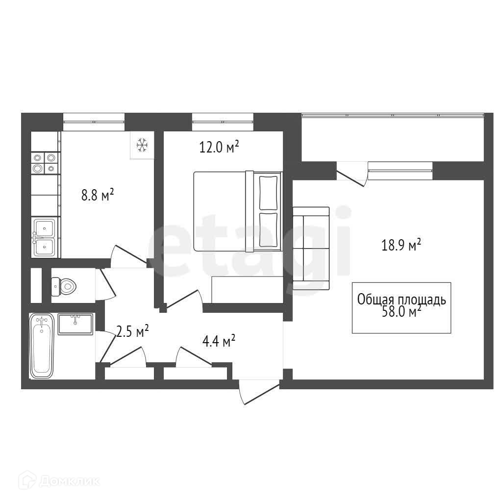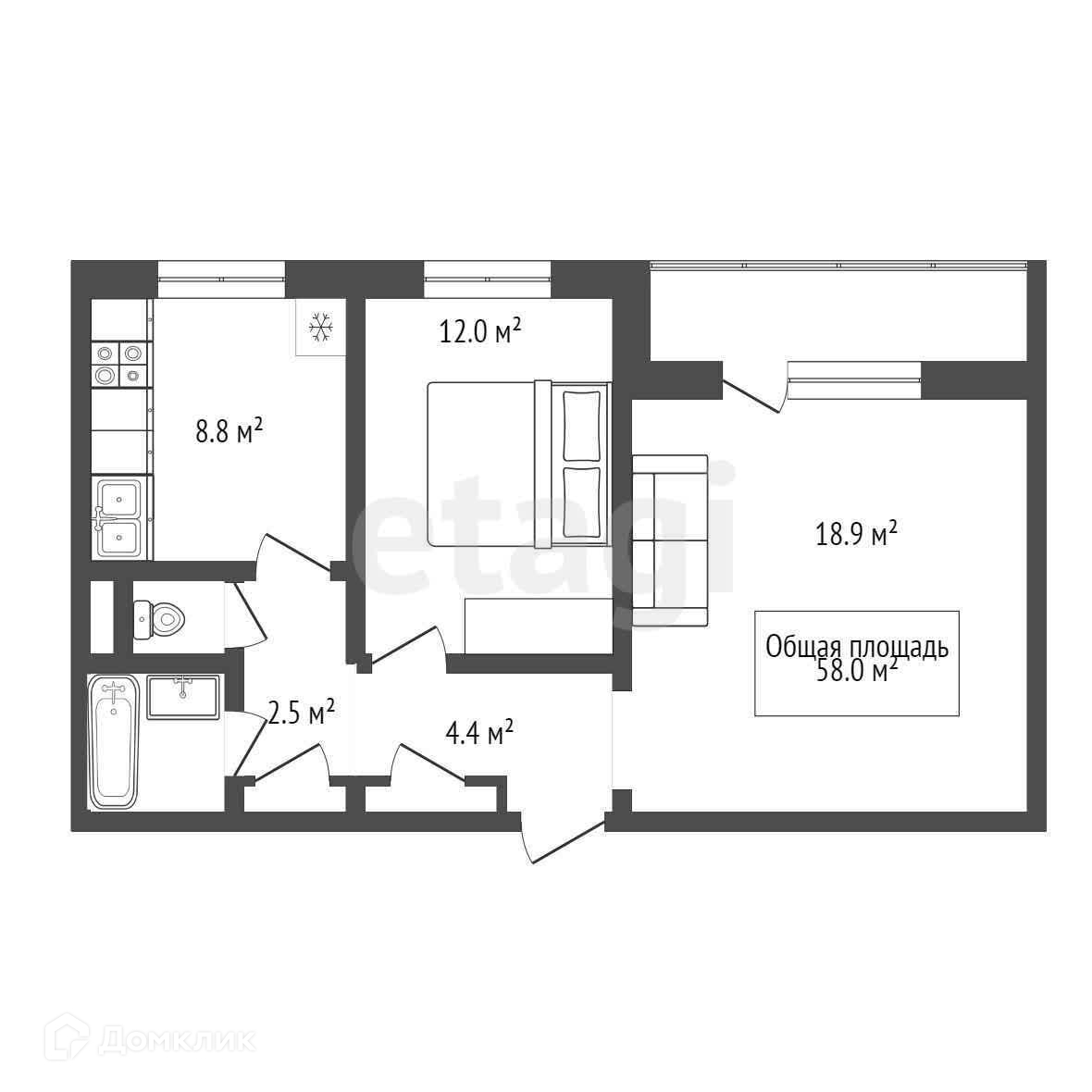 Общая площадь 50.7 м2