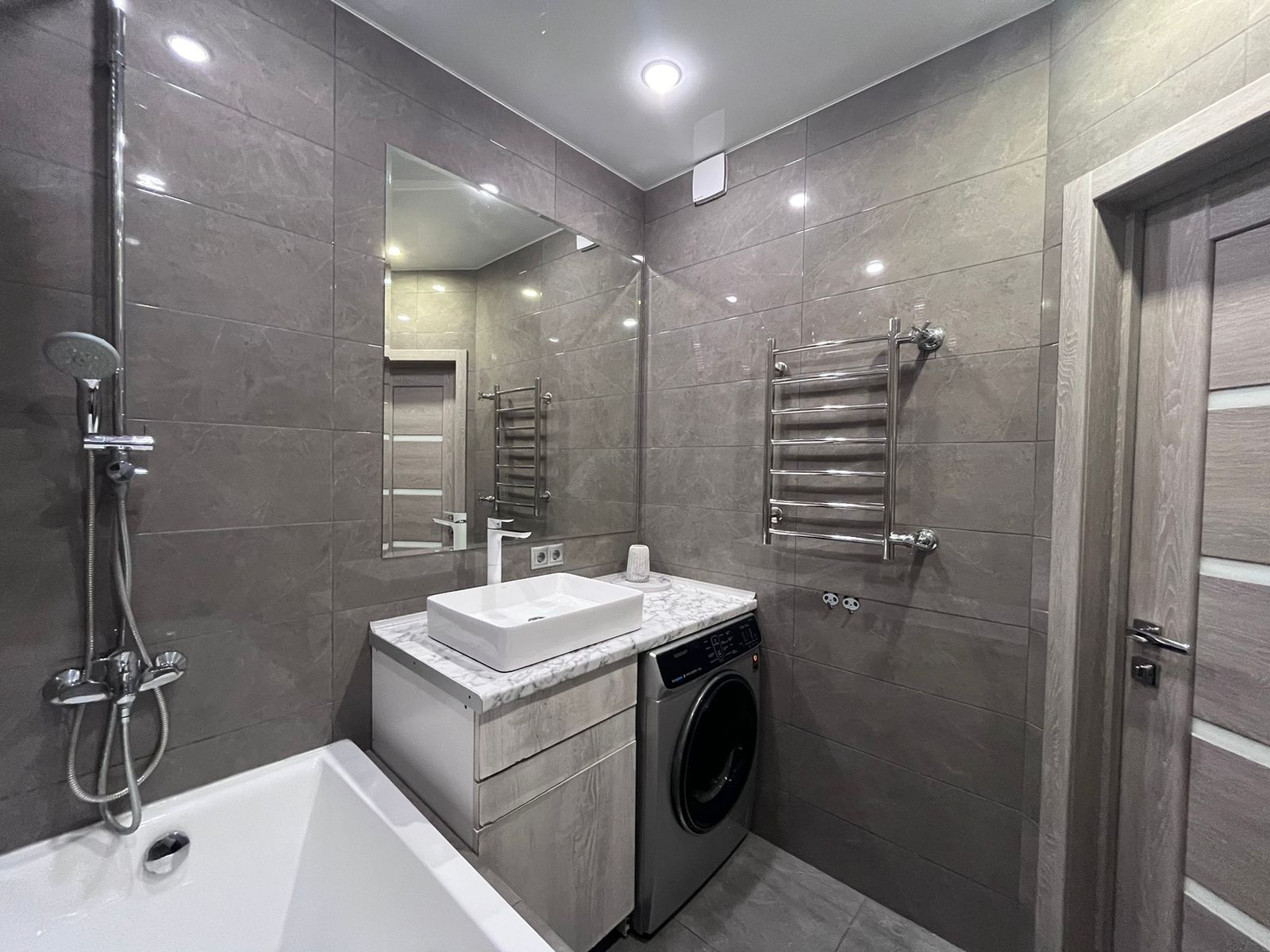 Установлены хорошие входные и межкомнатные двери , немецкая сантехника премиум класса Grohe,Geberit