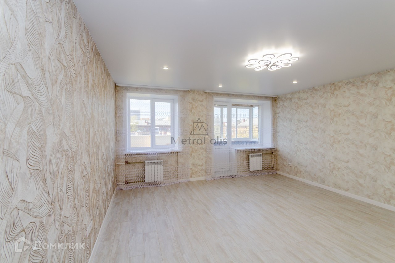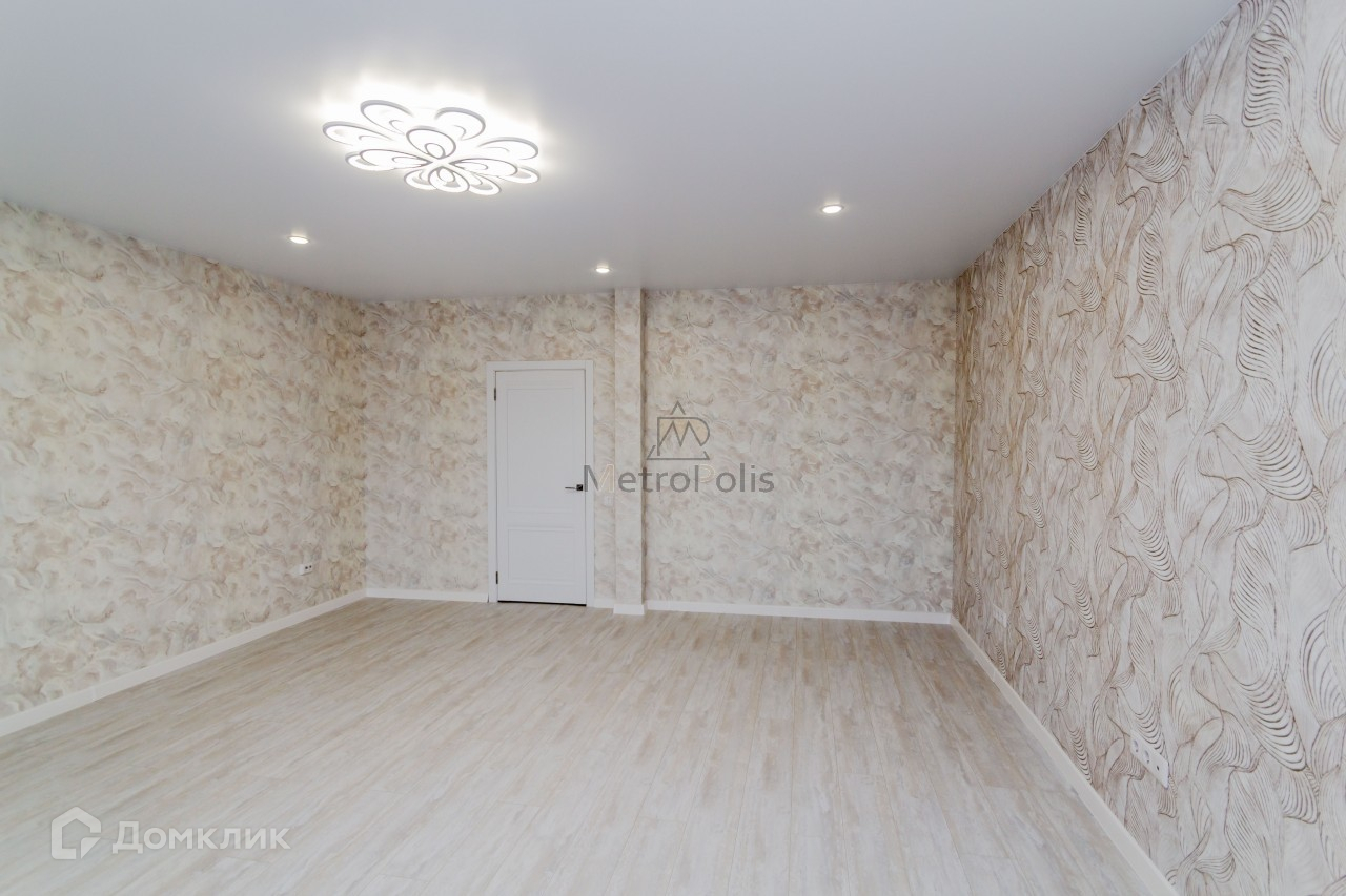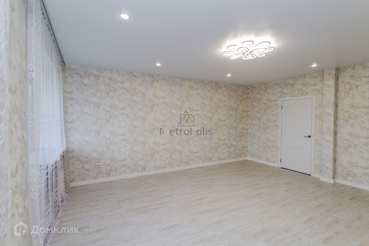Окна пластиковые, на полу ламинат, дорогие обои, кафель, натяжные потолки. 2 балкона (один из них застеклен). Квартира для большой семьи, просторная гостиная около 30 квадратов с застеклённым балконом, кухня 9.3, отдельные 3 спальни., совмещенный санузел. Окна на 2 стороны, очень удобно (всегда тихо на частный детский сад и во двор).