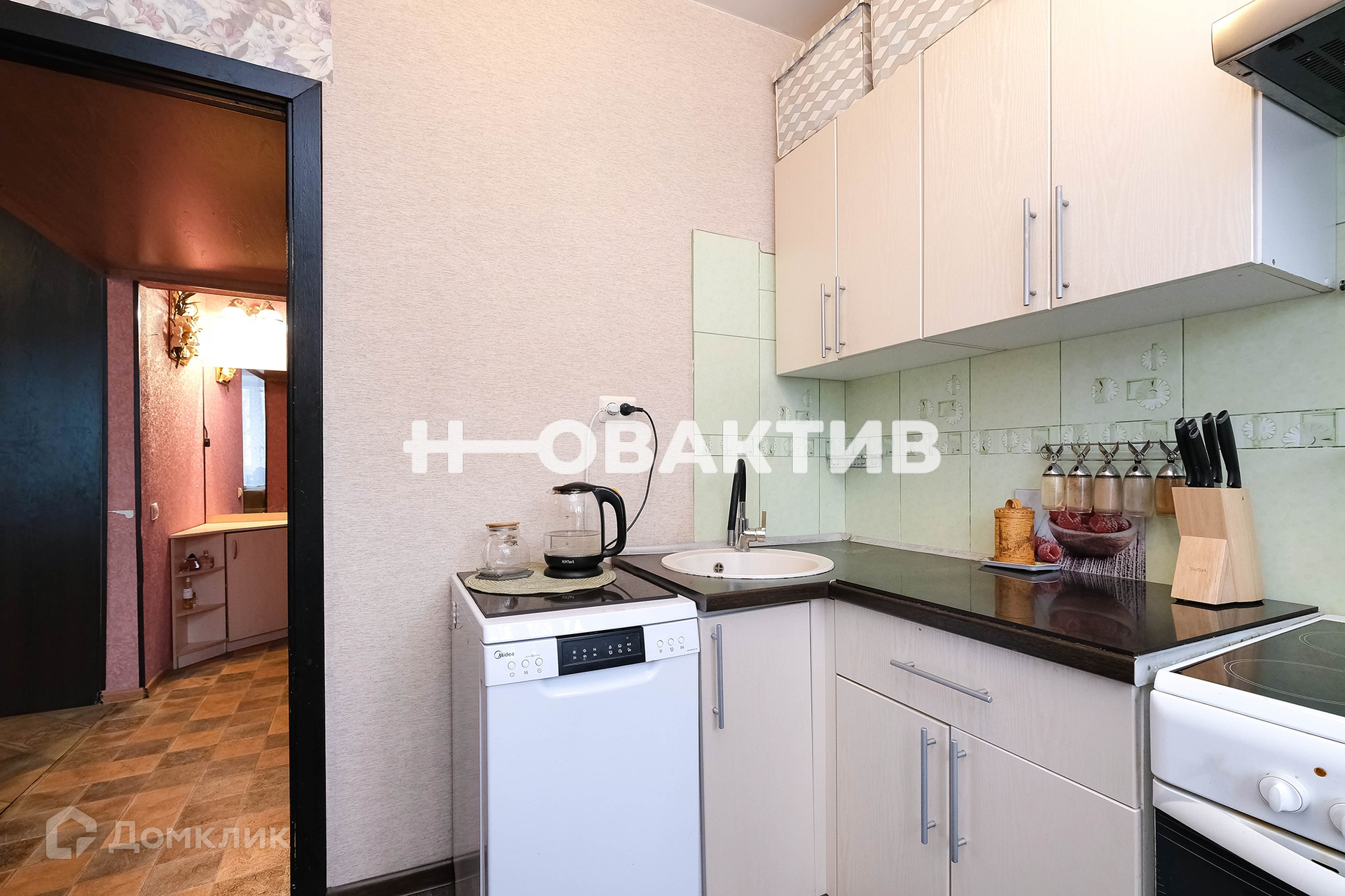 В квартире остается кухонный гарнитур и электроплита.