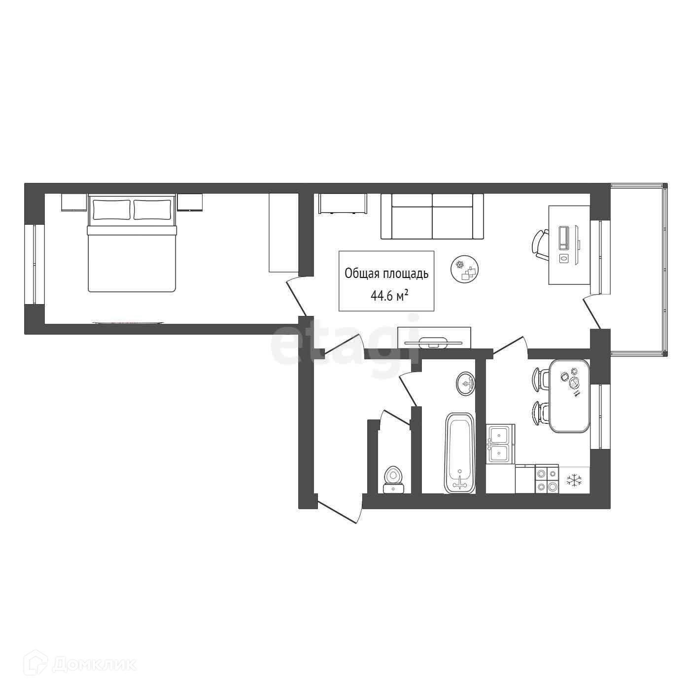 Общая площадь 44.6 м2