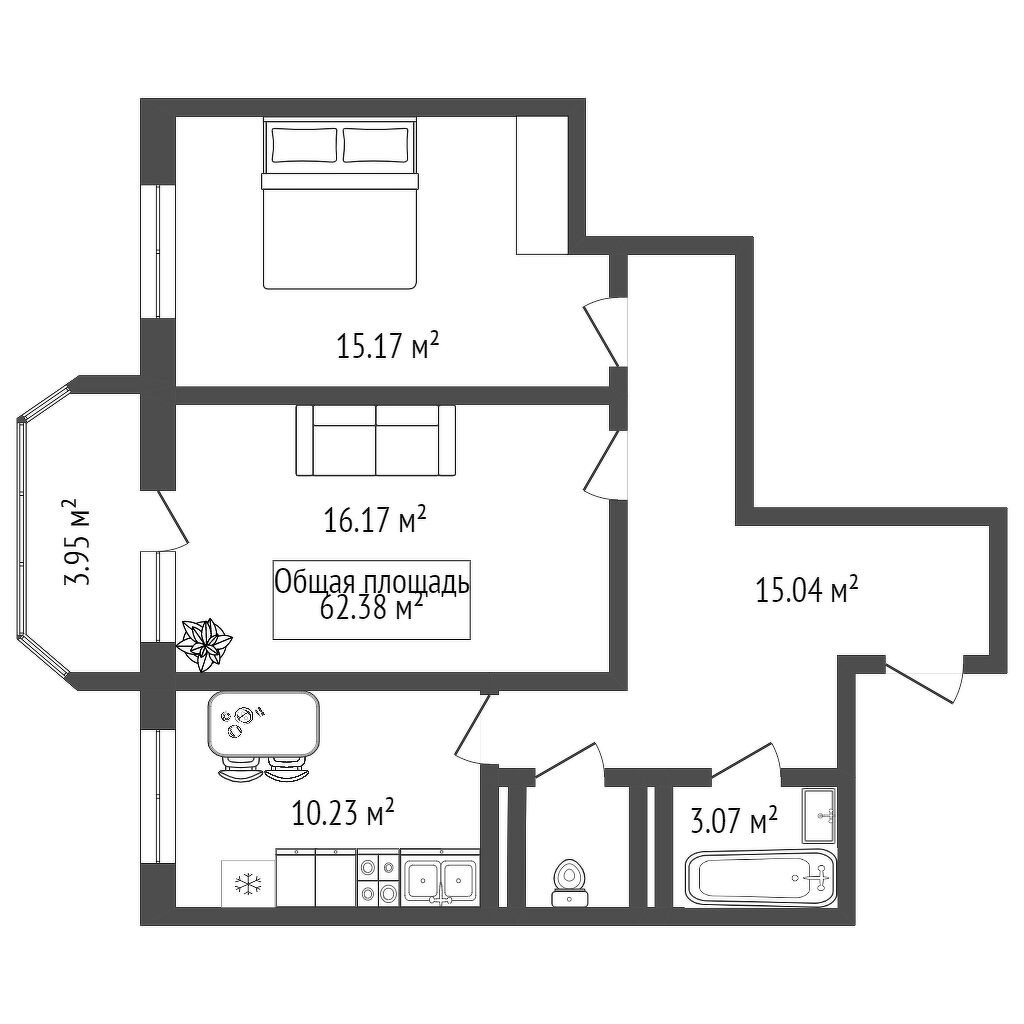 Общая площадь 62 м2