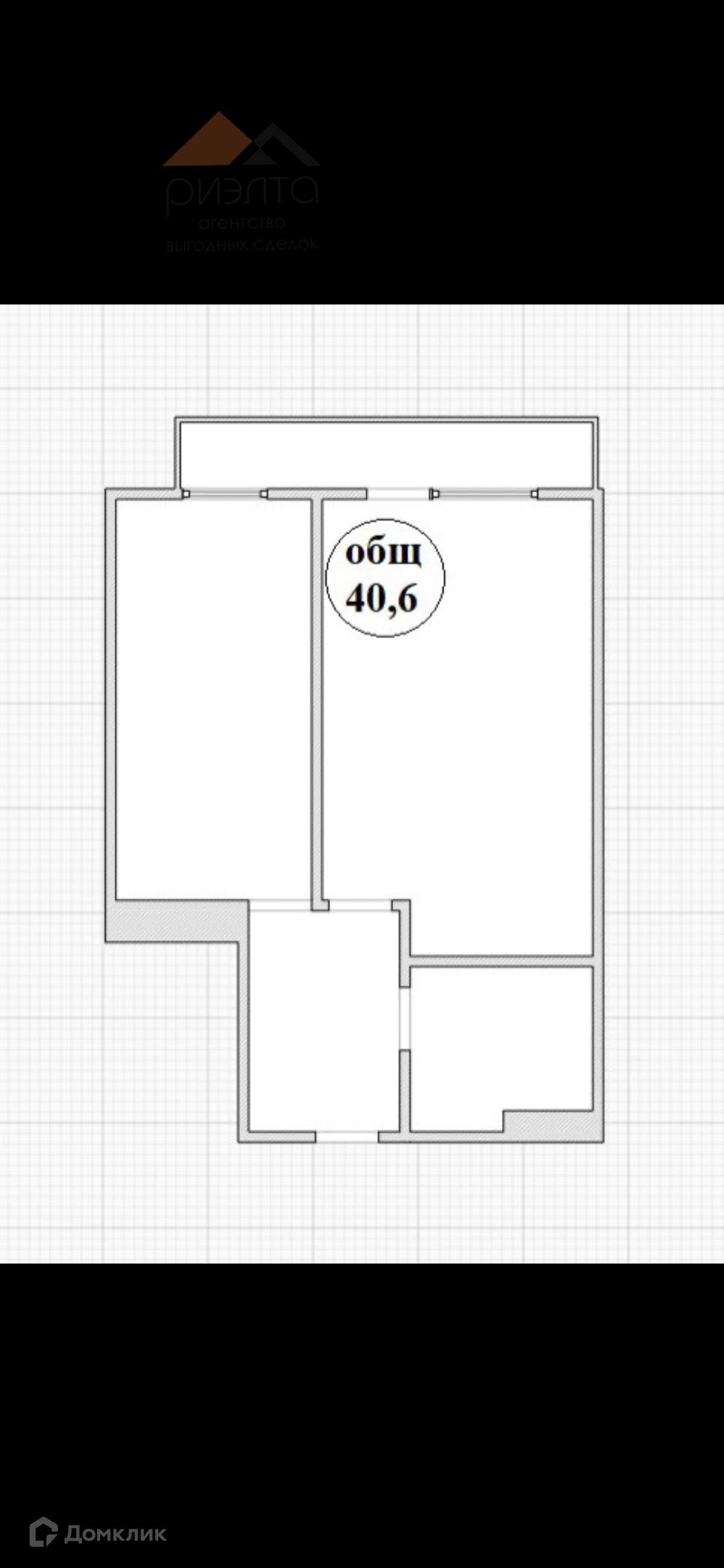 Общая площадь 40.6 м2