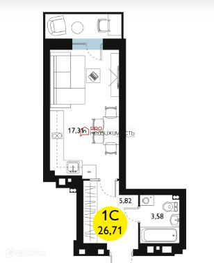 Общая площадь 26 м2