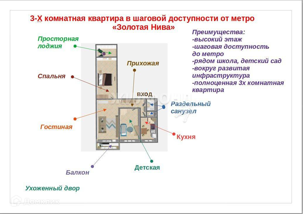 Продается уникальная 3-х комнатная квартира в шаговой доступности от станции метро Золотая Нива.