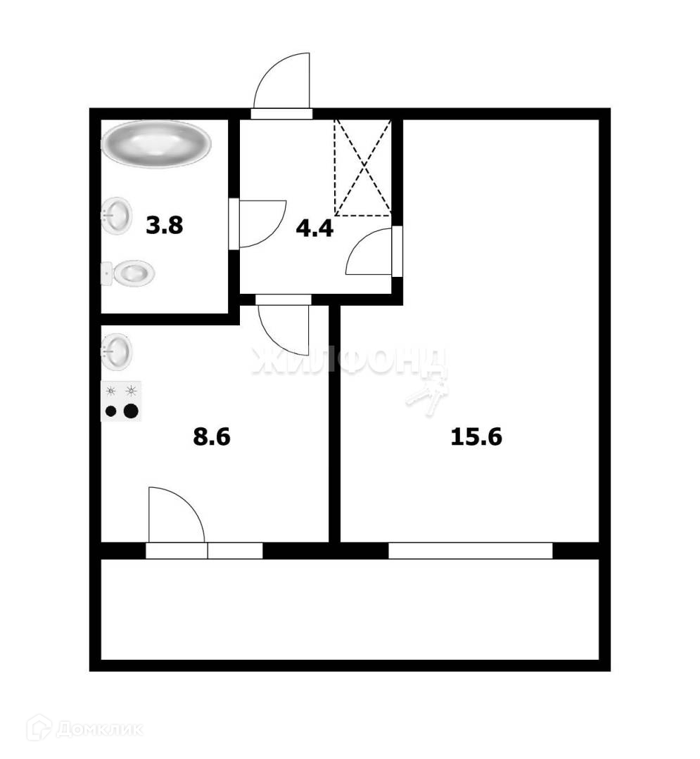 Жилая площадь 15.6 м2