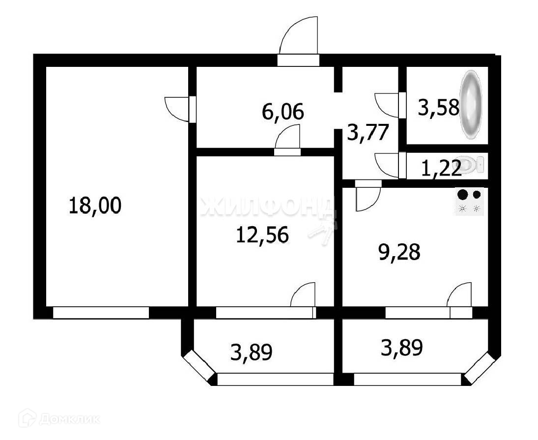 2-комнатная квартира, 55.3 м2, этаж 17 / 19, на продажу в Новосибирске, Вертковская улица, 117