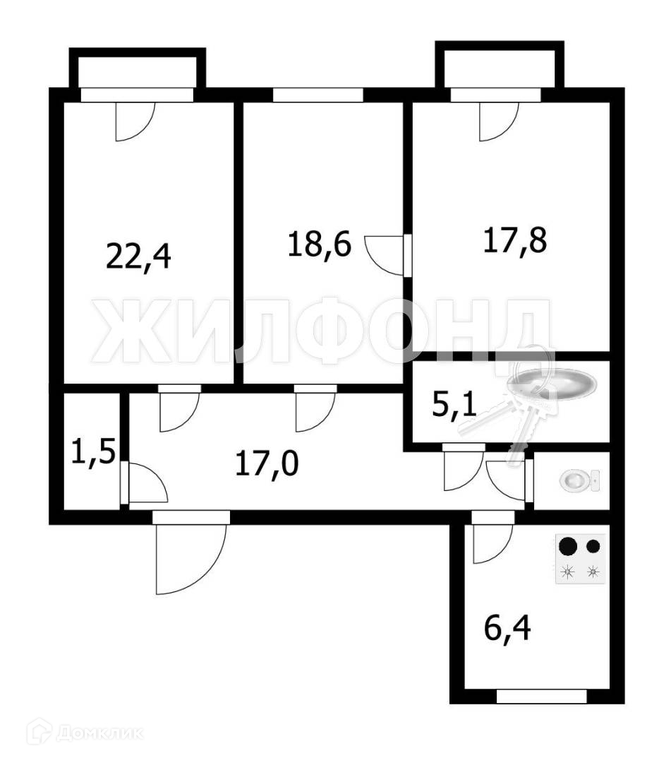 Жилая площадь 58.8 м2