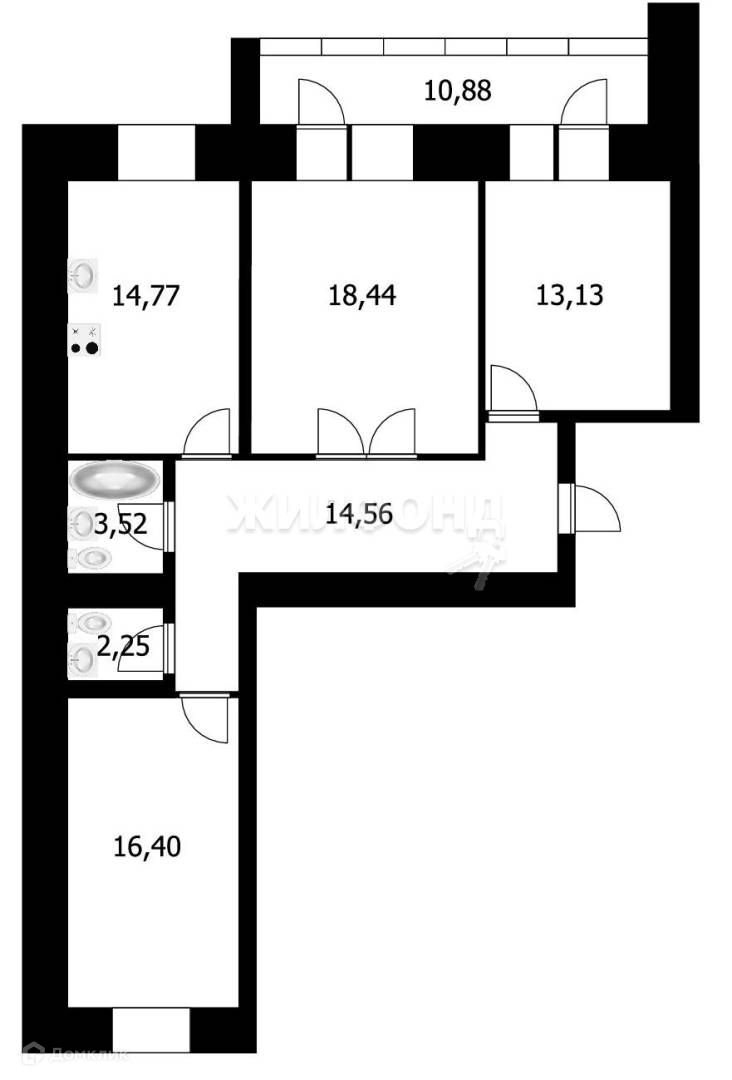 3-комнатная квартира, 82 м2, этаж 4 / 10, на продажу в Новосибирске, улица Аникина, 37/1