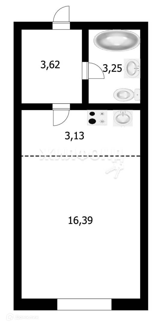 Квартира студия, 26.2 м2, этаж 2 / 4, на продажу в Новосибирске, Рубежная улица, 56