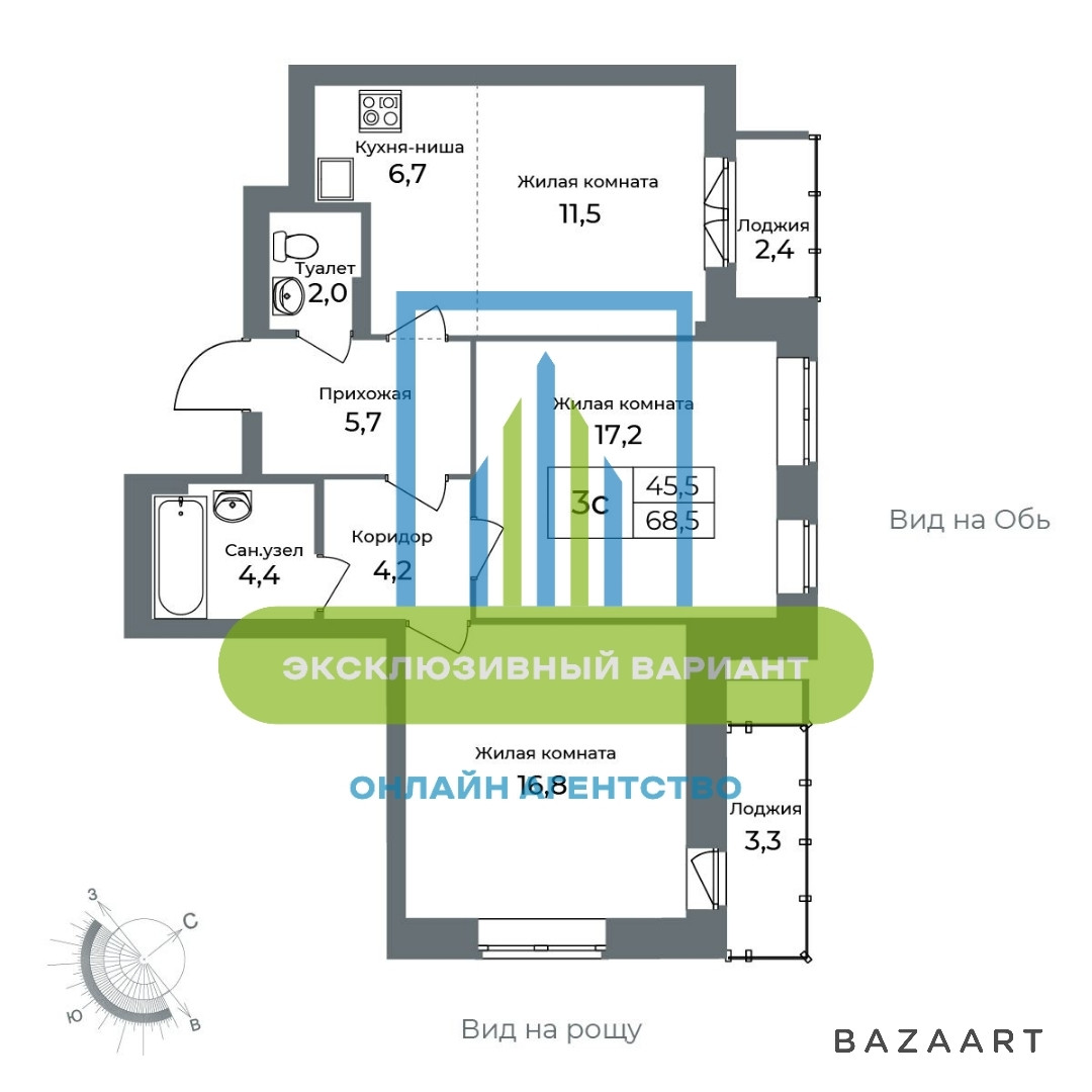 Общая площадь 68.5 м2