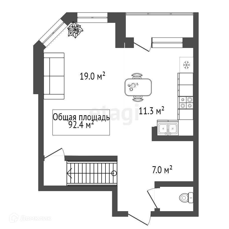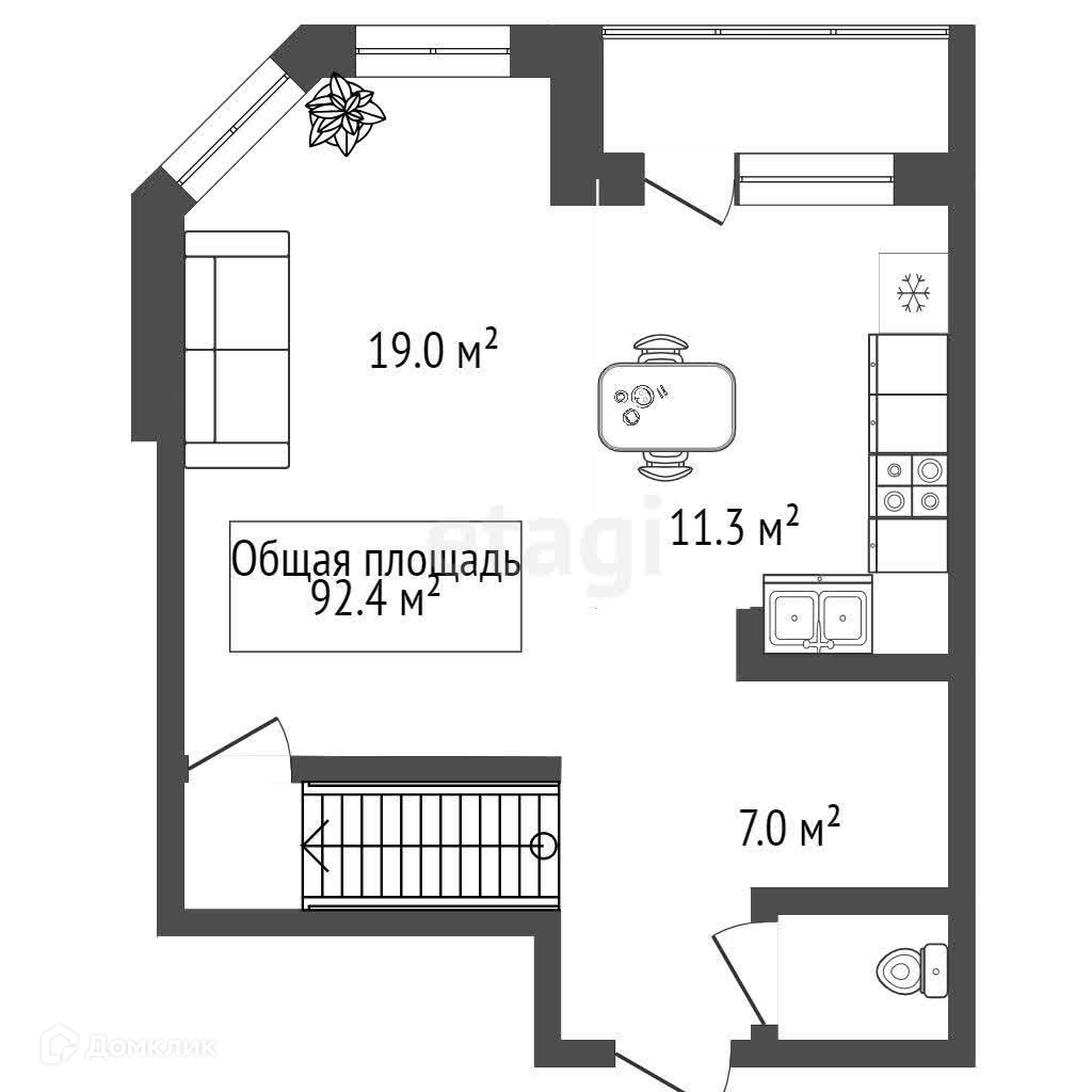 Общая площадь 92.4 м2