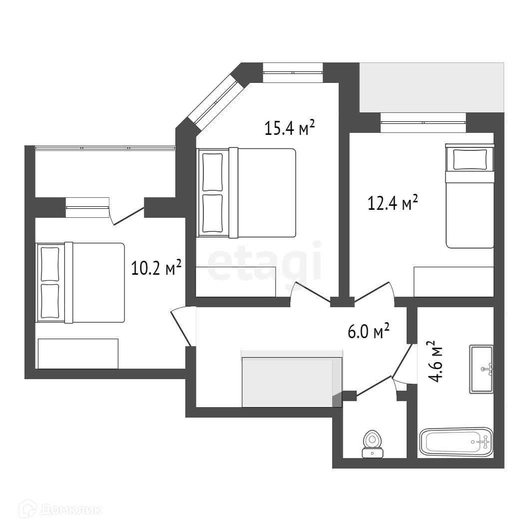 4-комнатная квартира, 92.4 м2, этаж 5 / 6, на продажу в Новосибирске, Каменская улица, 56/1