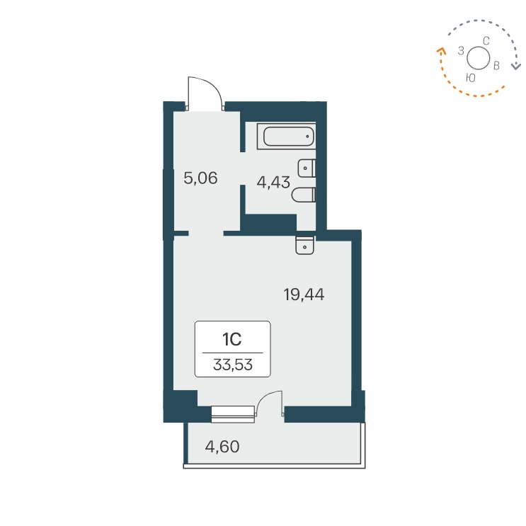 Общая площадь 33.53 м2