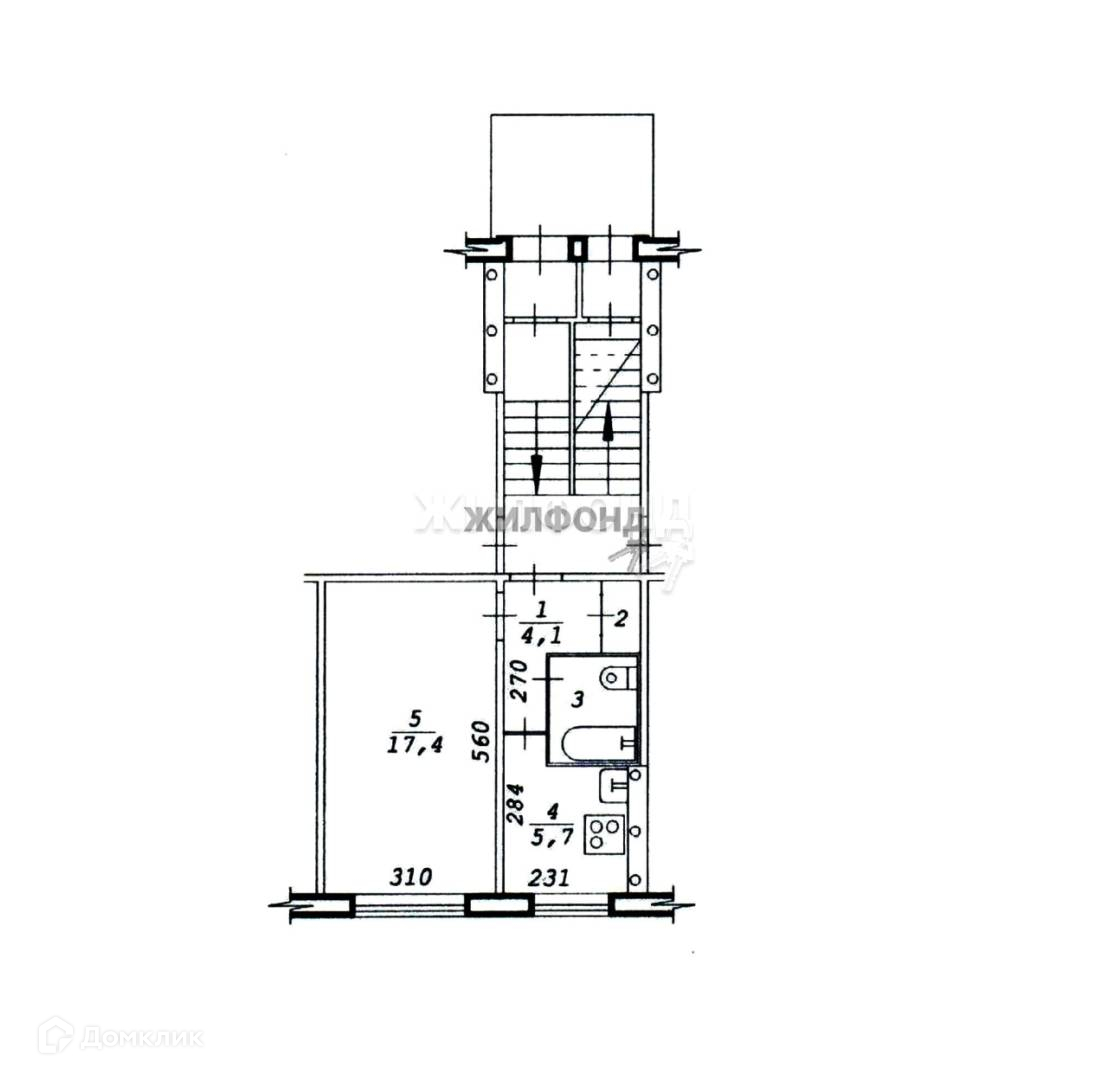 1-комнатная квартира, 28.8 м2, этаж 1 / 5, на продажу в Новосибирске, улица Кропоткина, 124/1