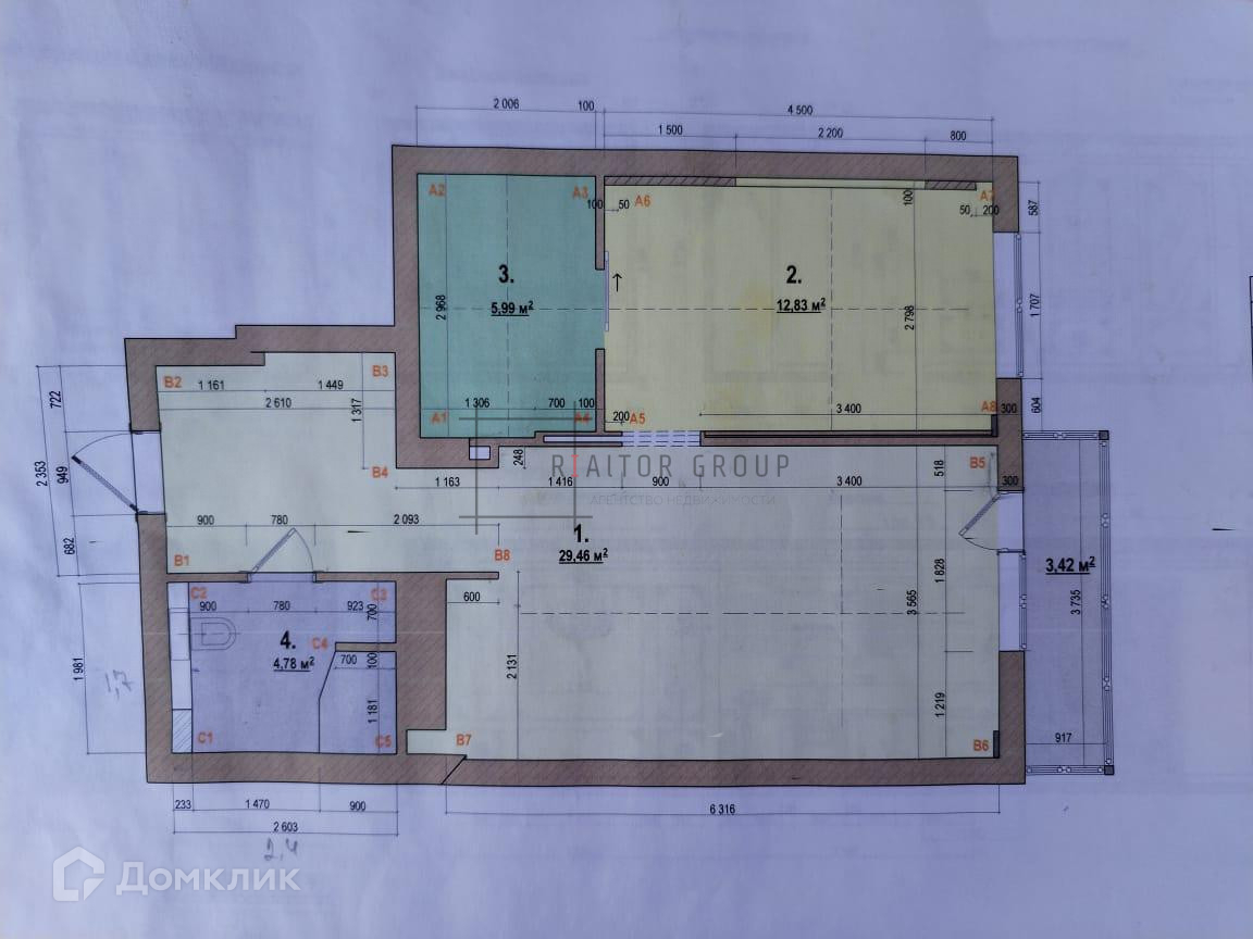 Общая площадь 54 м2
