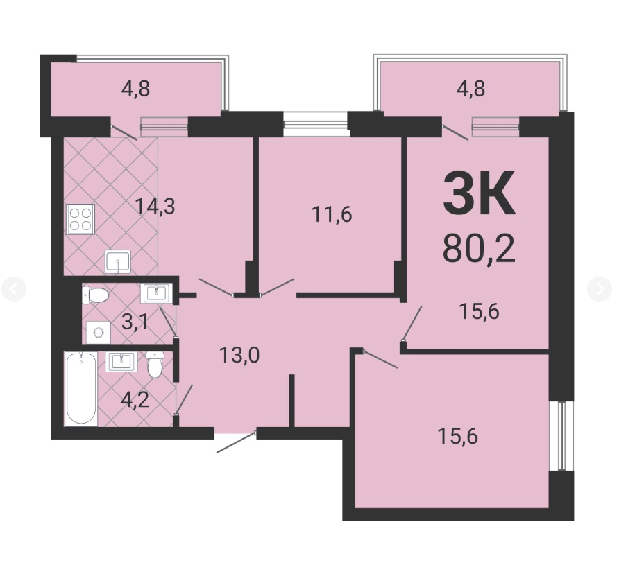 Общая площадь 80.2 м2