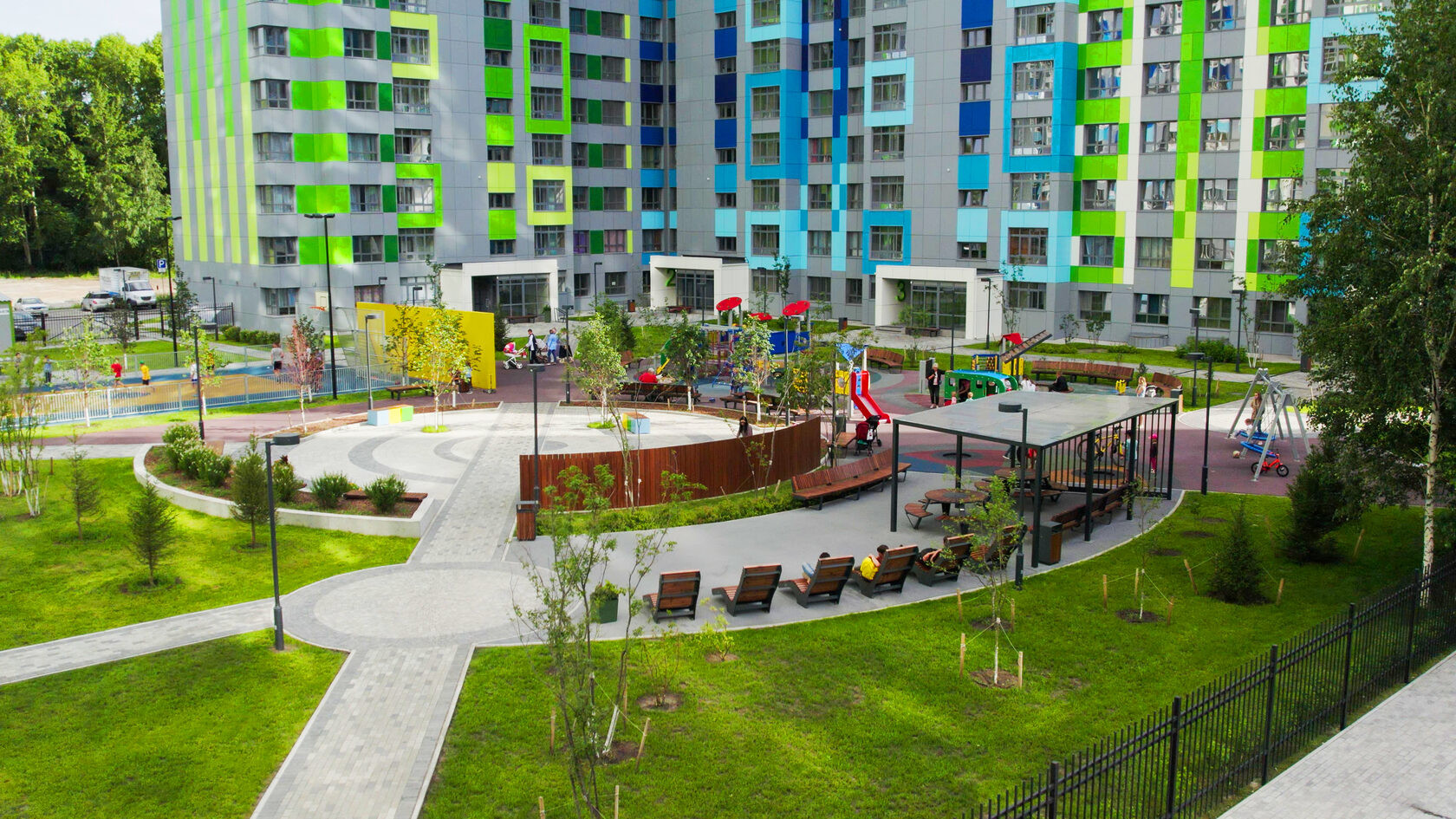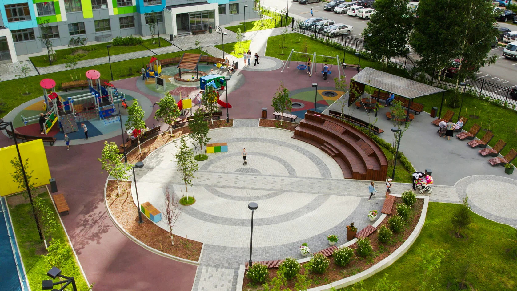 •    Новый комфортный жилой комплекс. Рядом с домом всегда много свободных парковочных мест, благоустроенный двор с современными игровыми площадками для детей всех возрастов