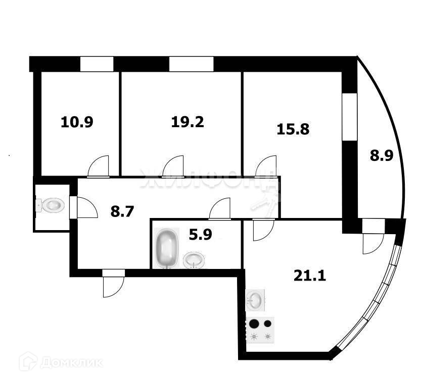 3-комнатная квартира, 90.1 м2, этаж 15 / 25, на продажу в Новосибирске, улица Лескова, 25