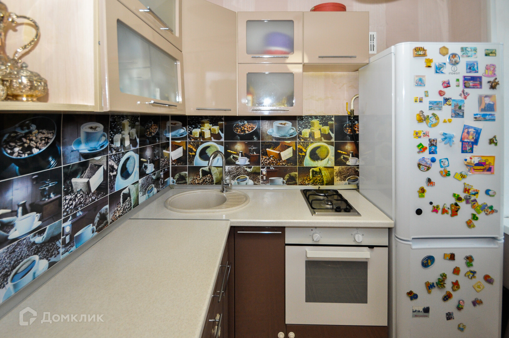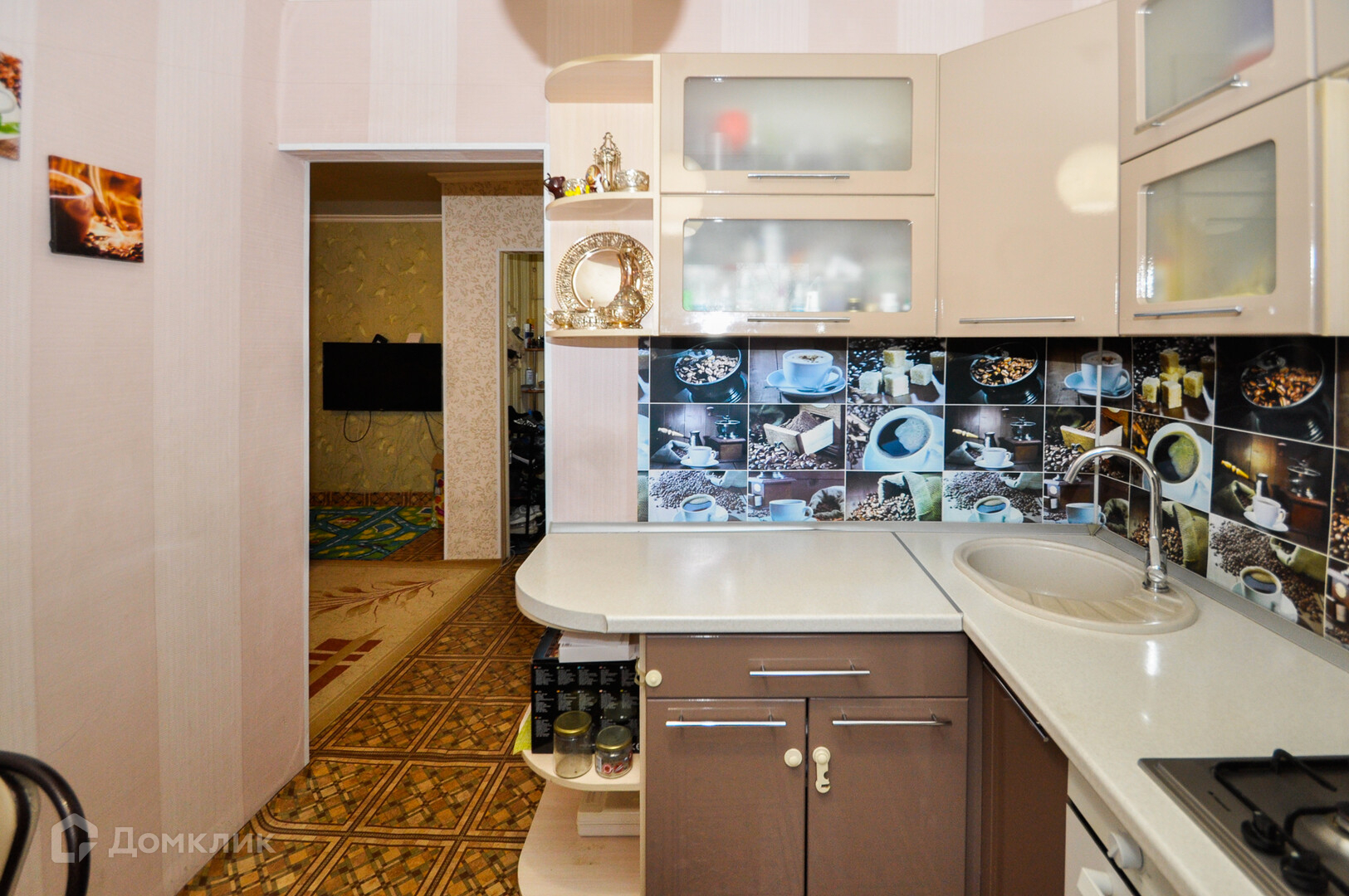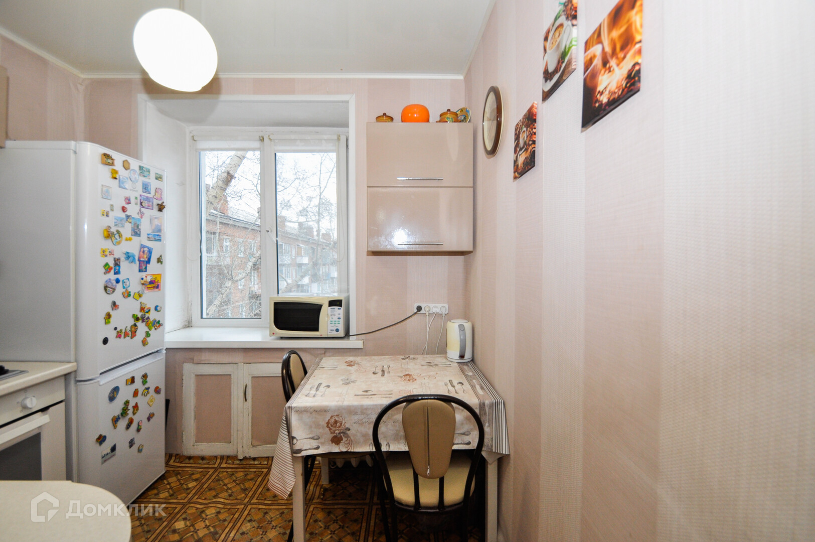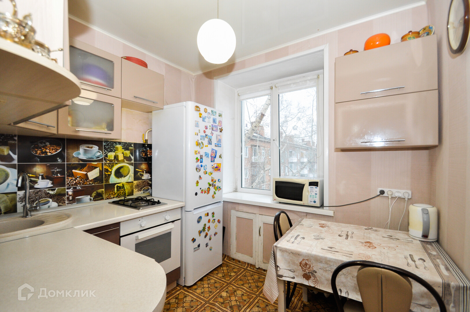 В квартире остается кухонный гарнитур со встроенной техникой.