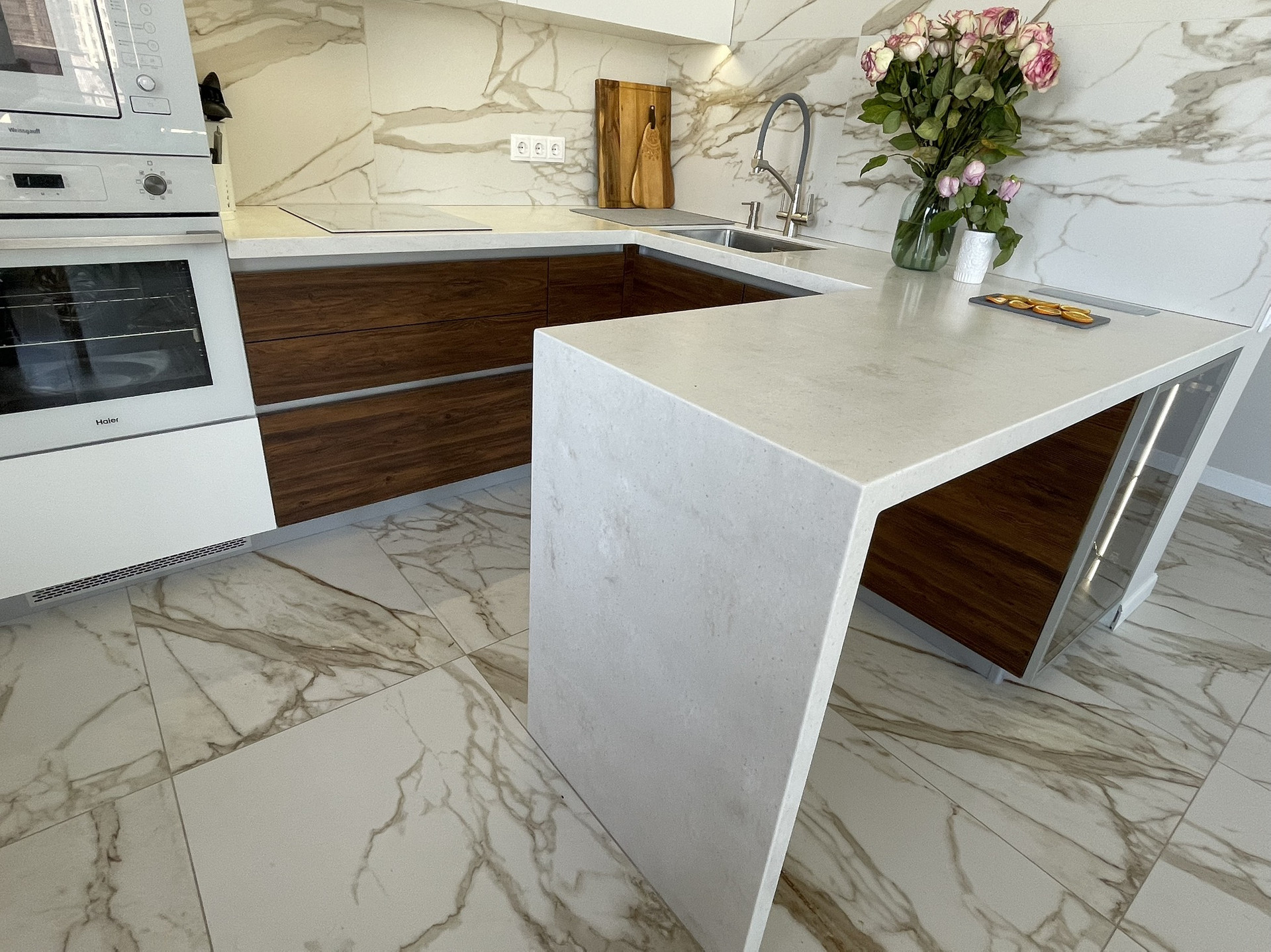 В ремонте использовались дорогие и качественные строительные материалы с которыми работали профессионалы своего дела, что в результате даёт великолепный результат! Керамогранит : Italon , Porcelanosa, швы затерты эпоксидной затиркой, чтобы со временем не пожелтели . Сантехника - omnires. Раковина Испания + ручная работа . Инсталляции - Geberit, унитазы am.pm .
