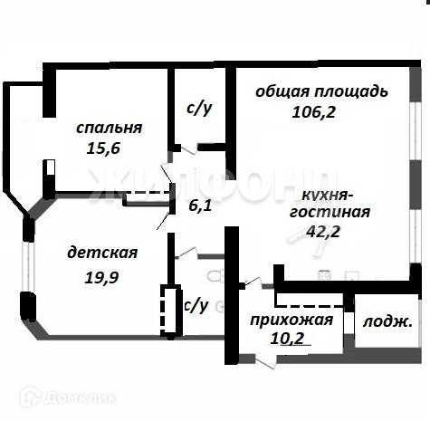 ОБЩАЯ ПЛОЩАДЬ квартиры (без учета двух лоджий) 106,2 м2.