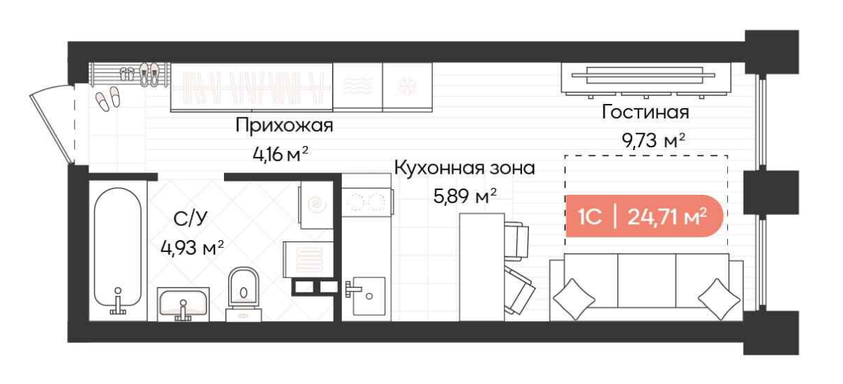 Общая площадь 24 м2
