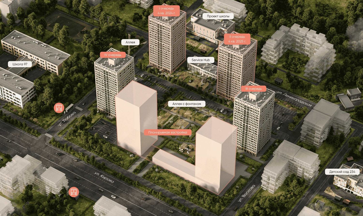 Квартал расположен в динамично развивающемся Октябрьском районе с развитой транспортной инфраструктурой и всем необходимым для счастливой жизни.
