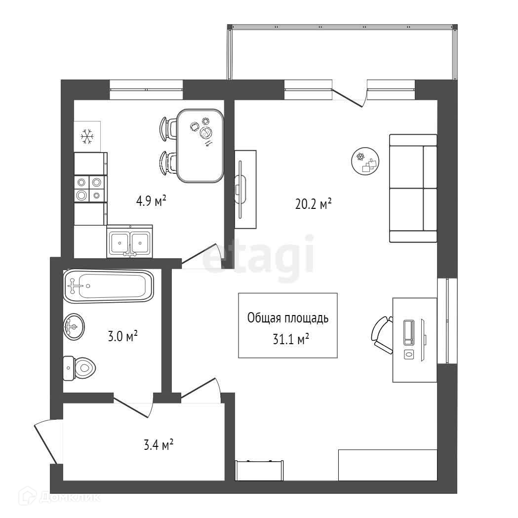 Общая площадь 31.1 м2