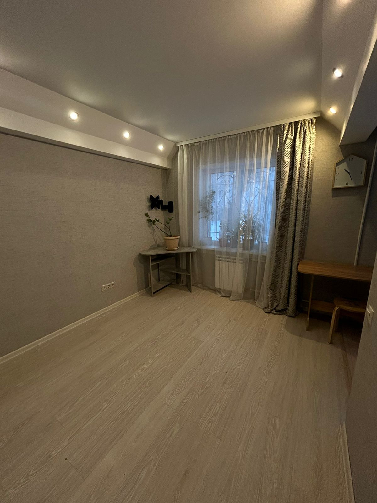 Сделан капитальный ремонт, выровнены стены, полы-стяжка (нет доски), электрика поменяна полностью, выровнен потолок по всей квартире с грамотно спланированным освещением, на полу ламинат, в ванной керамическая плитка.