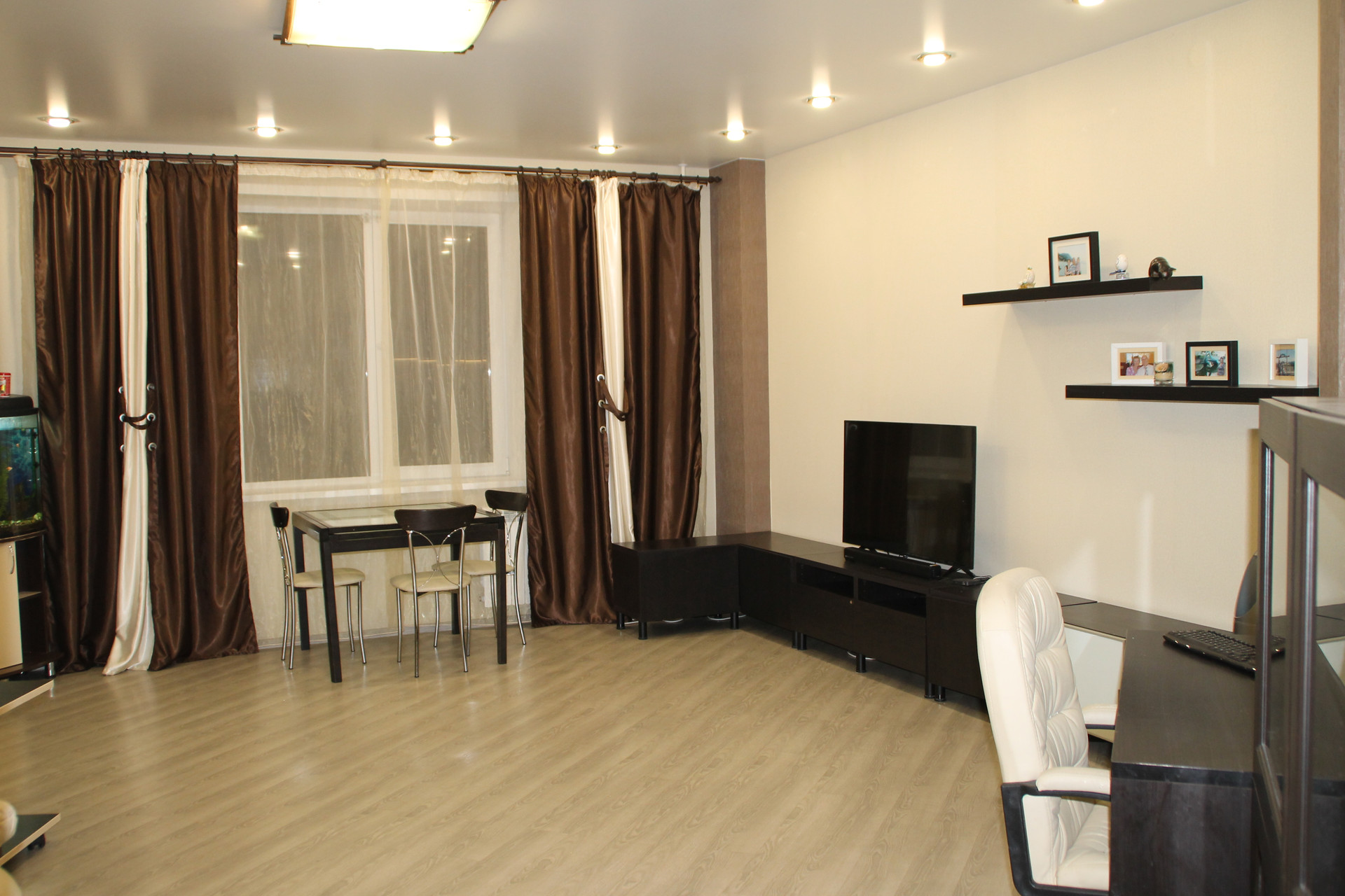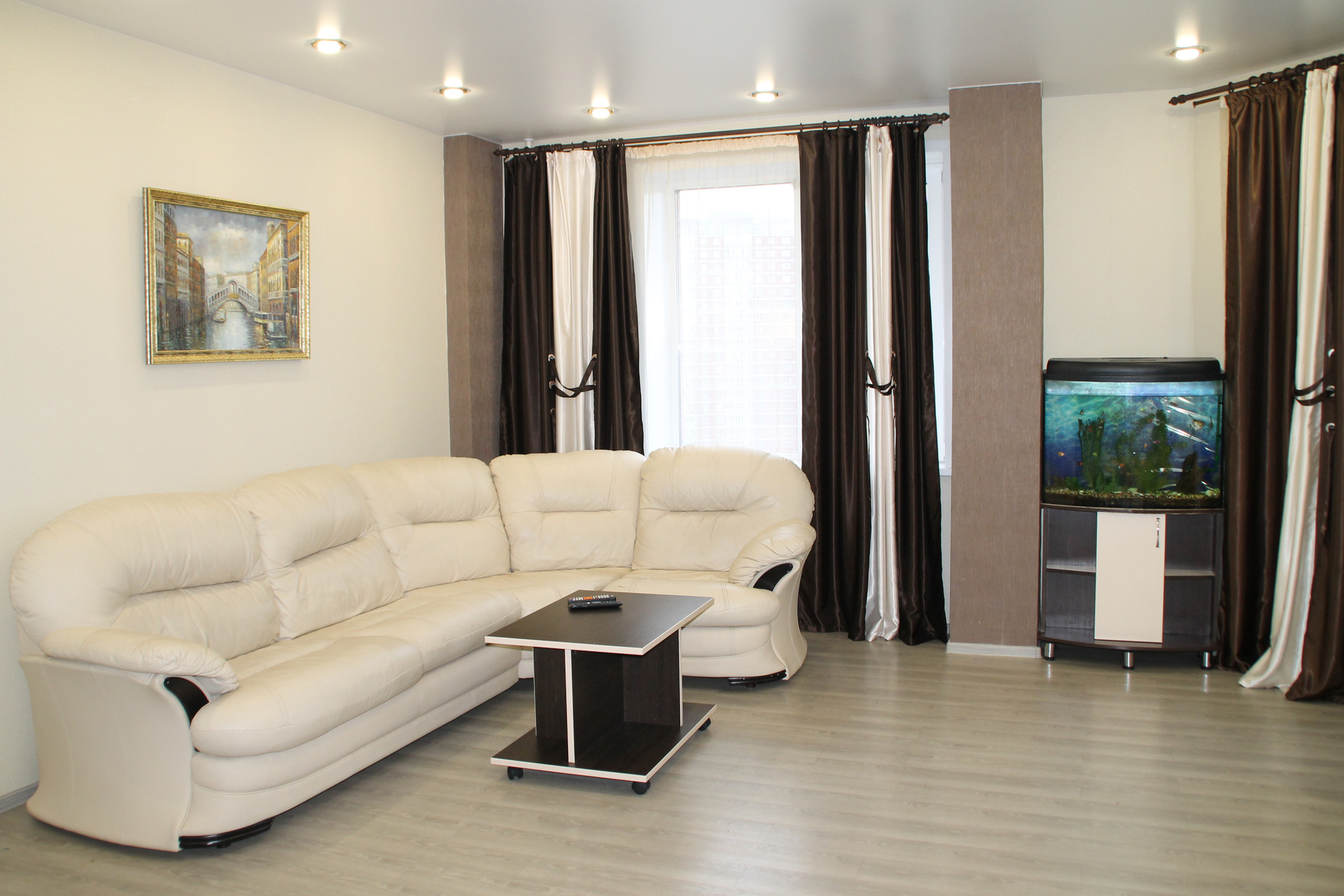 В квартире остается кухонный гарнитур со встроенной техникой, вся сантехника (в т.ч. ванная с гидромассажем), остальное по договоренности.