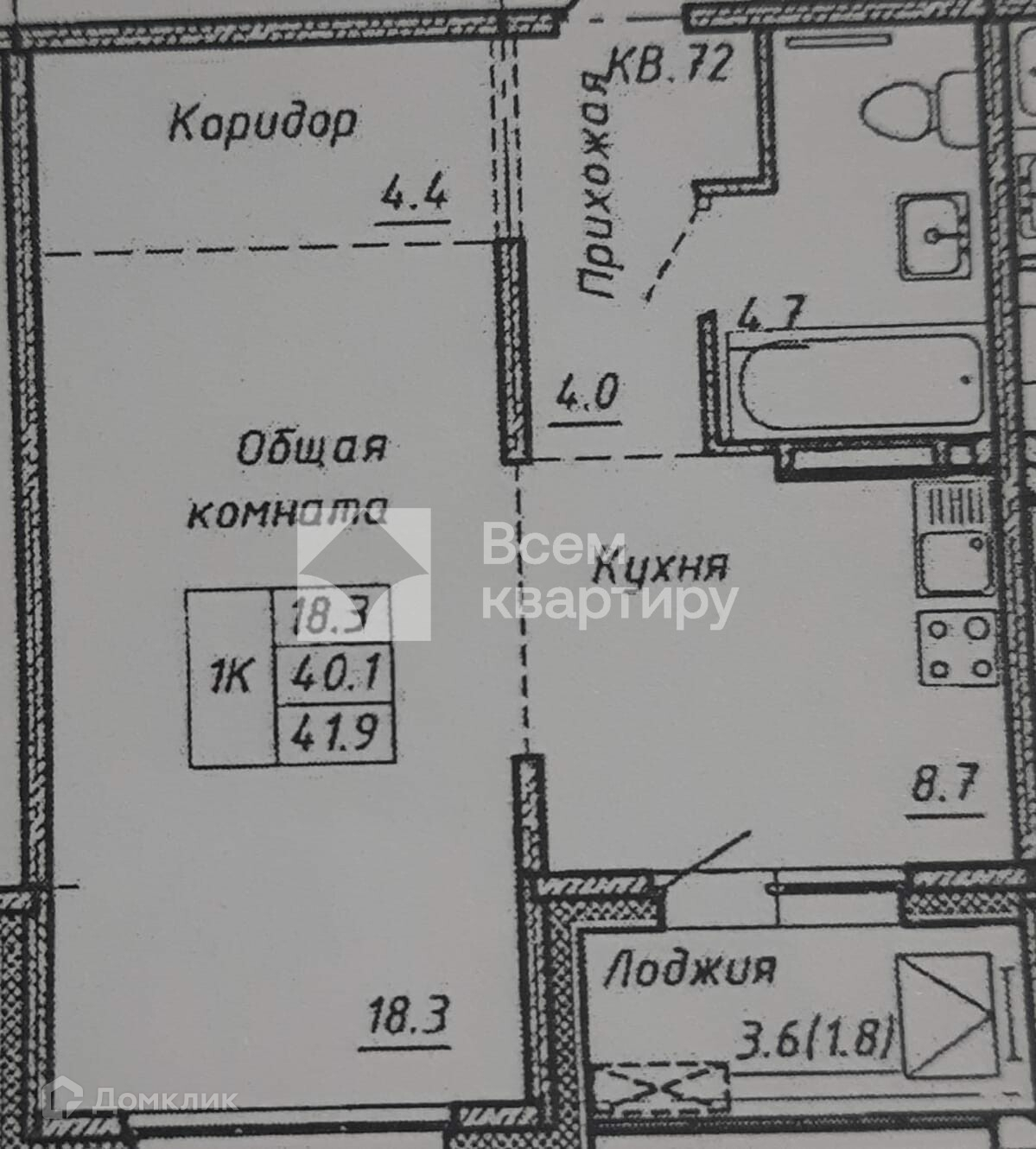 Общая площадь 41.9 м2