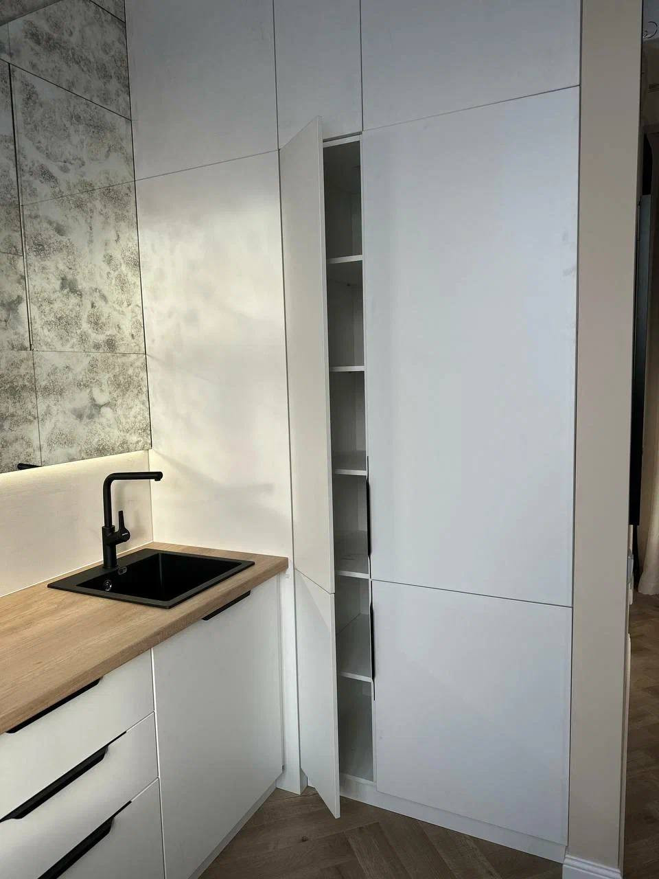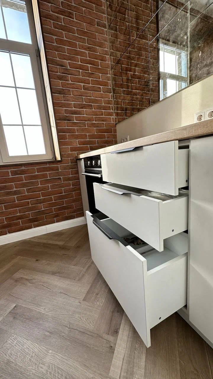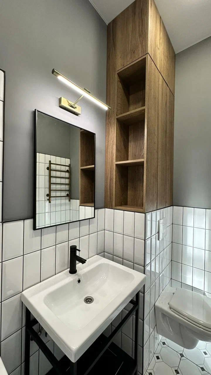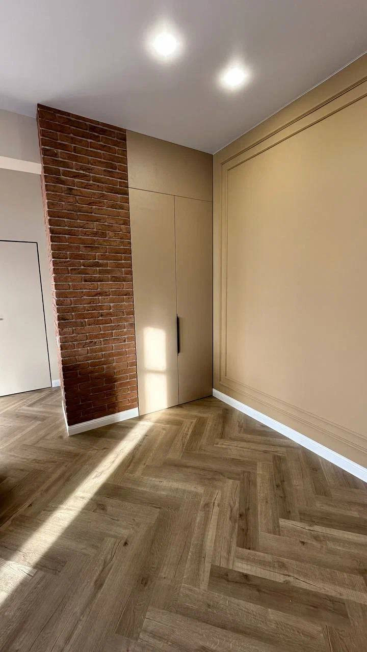 - дизайнерский ремонт из дорогих материалов, демонтировали всё старое включая электропроводку и сантехнику и провели всё новое, выровняли стены и полы;