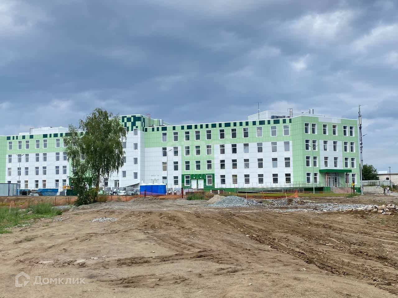 На фото изображены школа, детский сад, новейшая поликлиника.