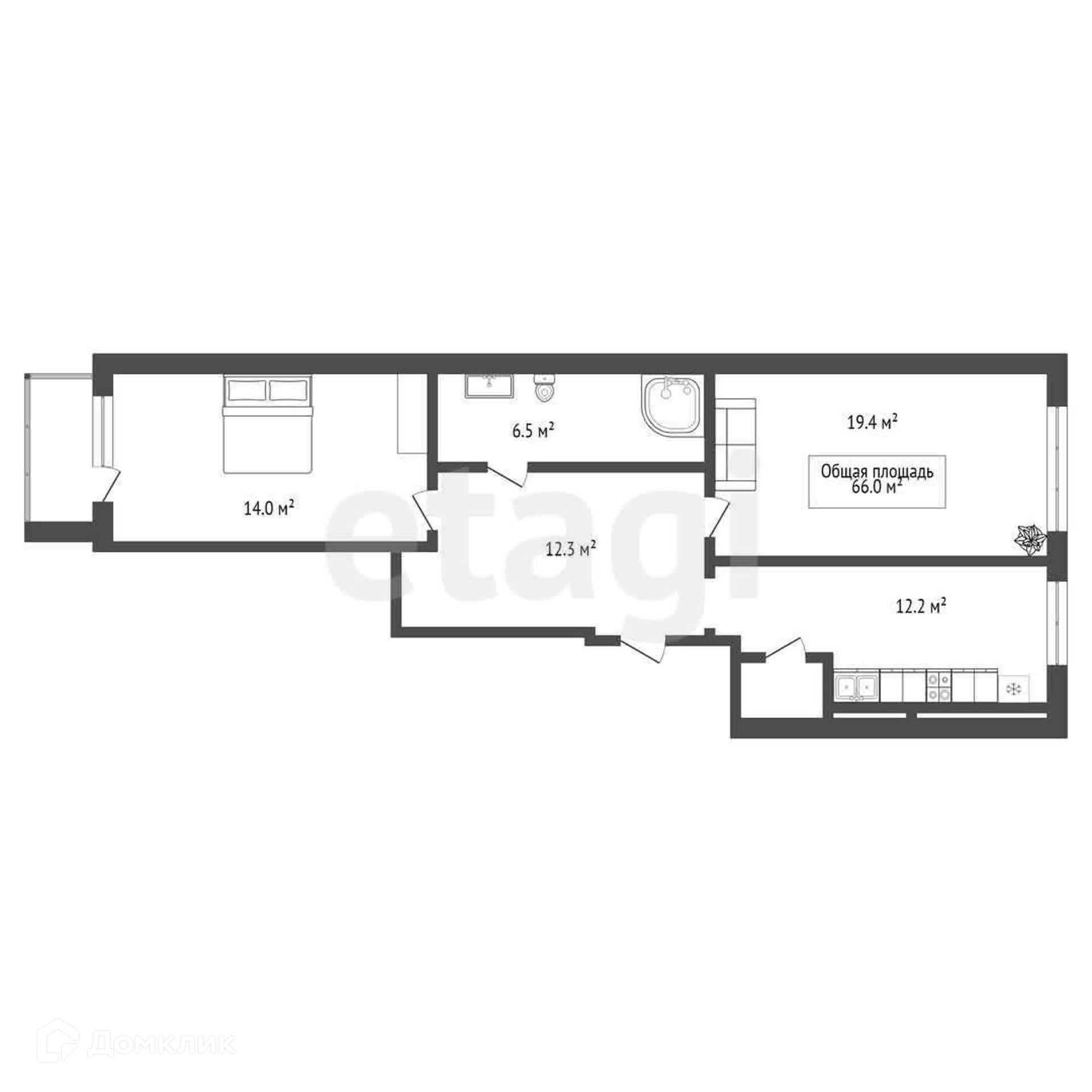 Общая площадь 66 м2
