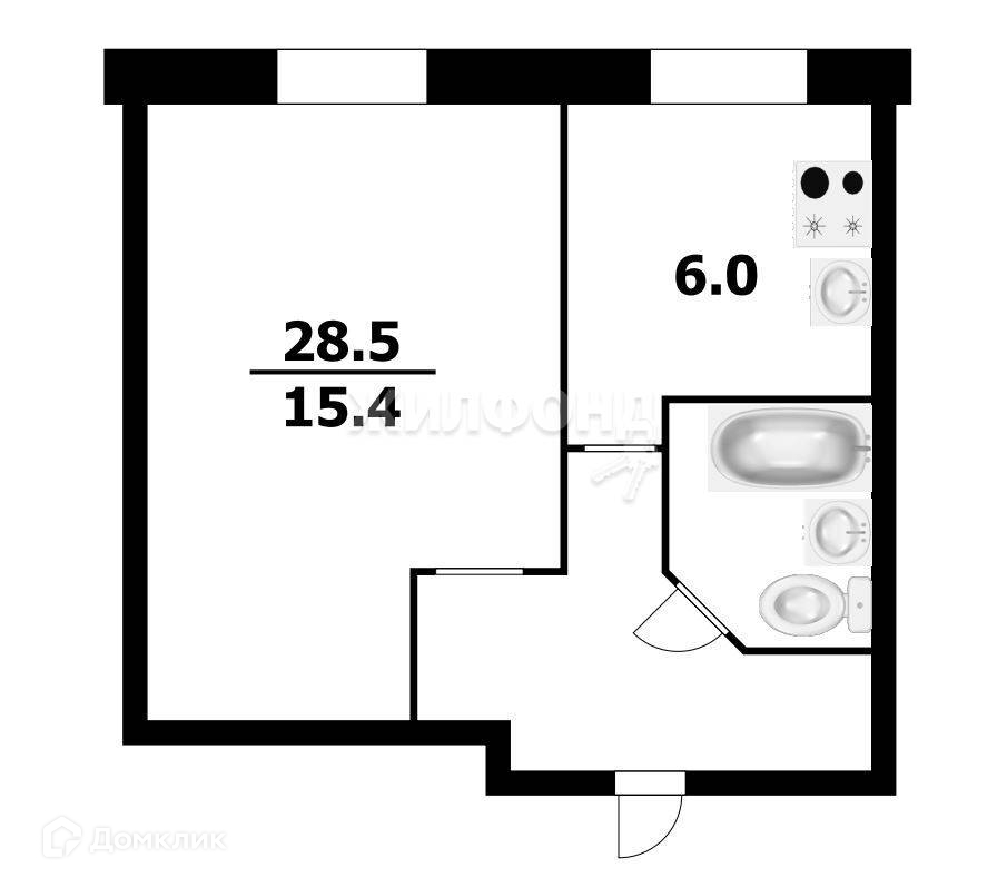 Общая площадь 28.5 м2
