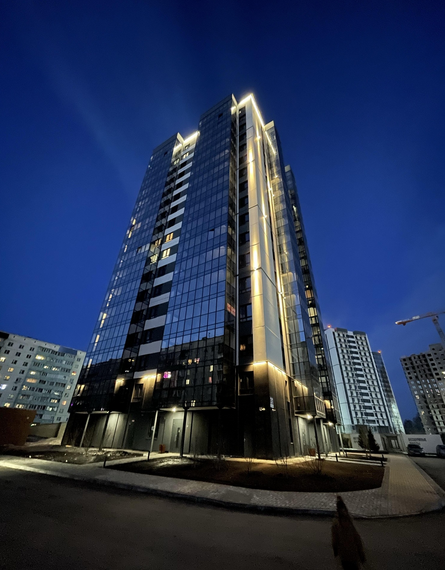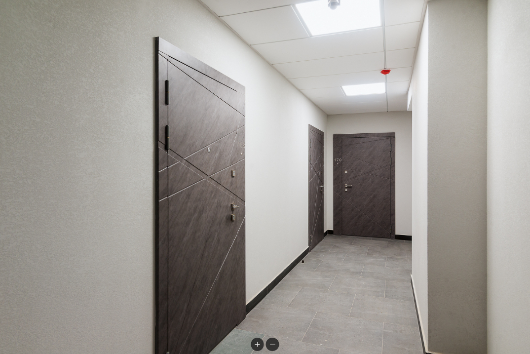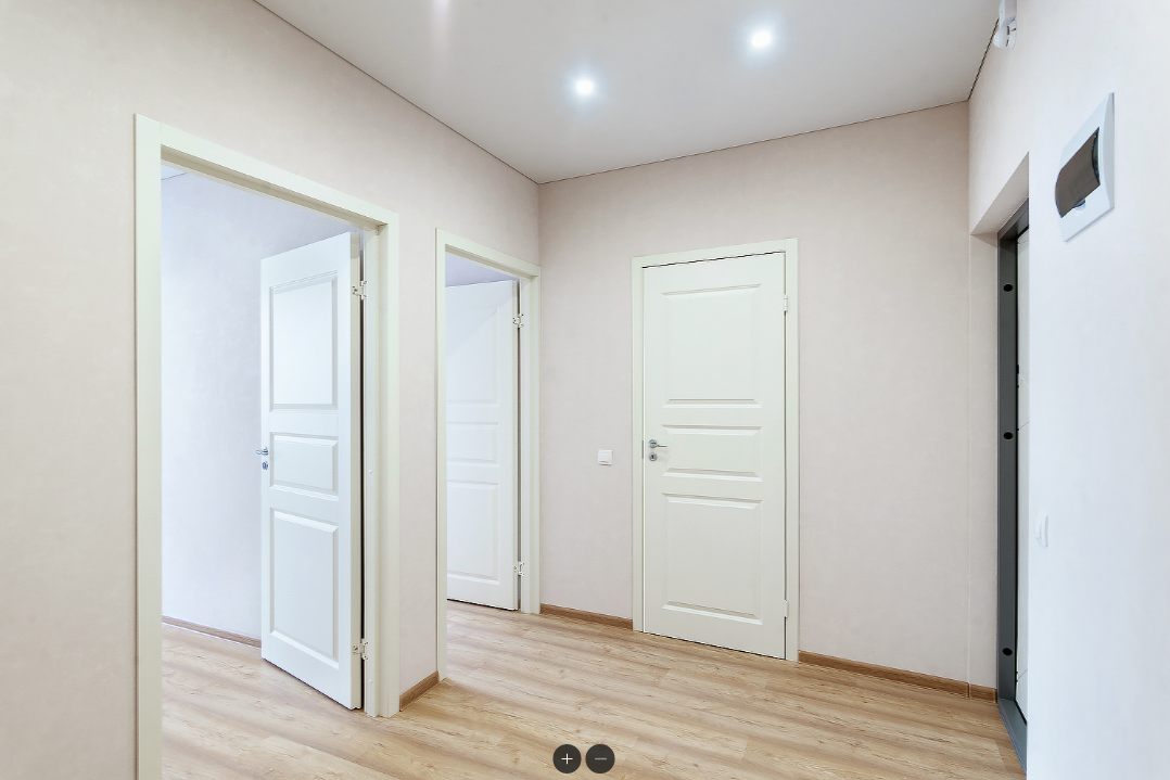 В комнатах и кухне - натяжной потолок, ламинат, обои, установлены двери. Санузлы отделаны кафелем в полную высоту стен, смонтирована сантехника и смесители, точечные светильники. Панорамное остекление балкона в пол, большое количество света.