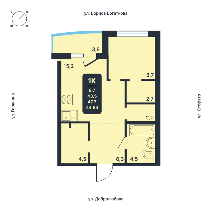 Общая площадь 44 м2
