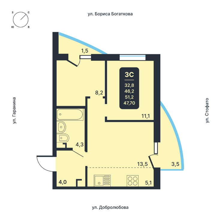 Общая площадь 47 м2