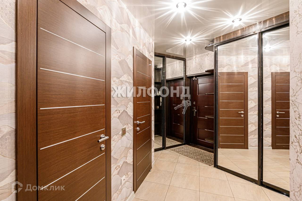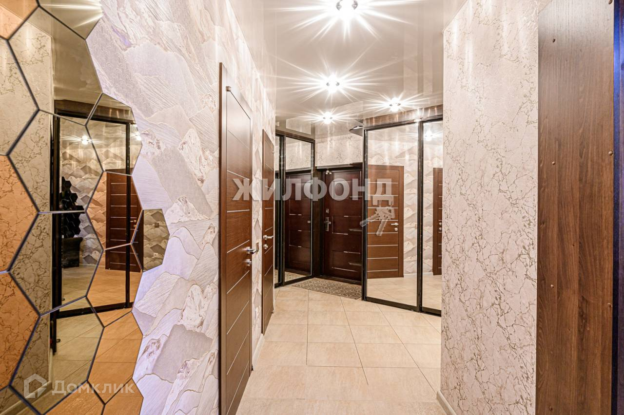 Прихожая оборудована двумя большими зеркальными шкаф-купе и зеркальным шкафом-нишей.
