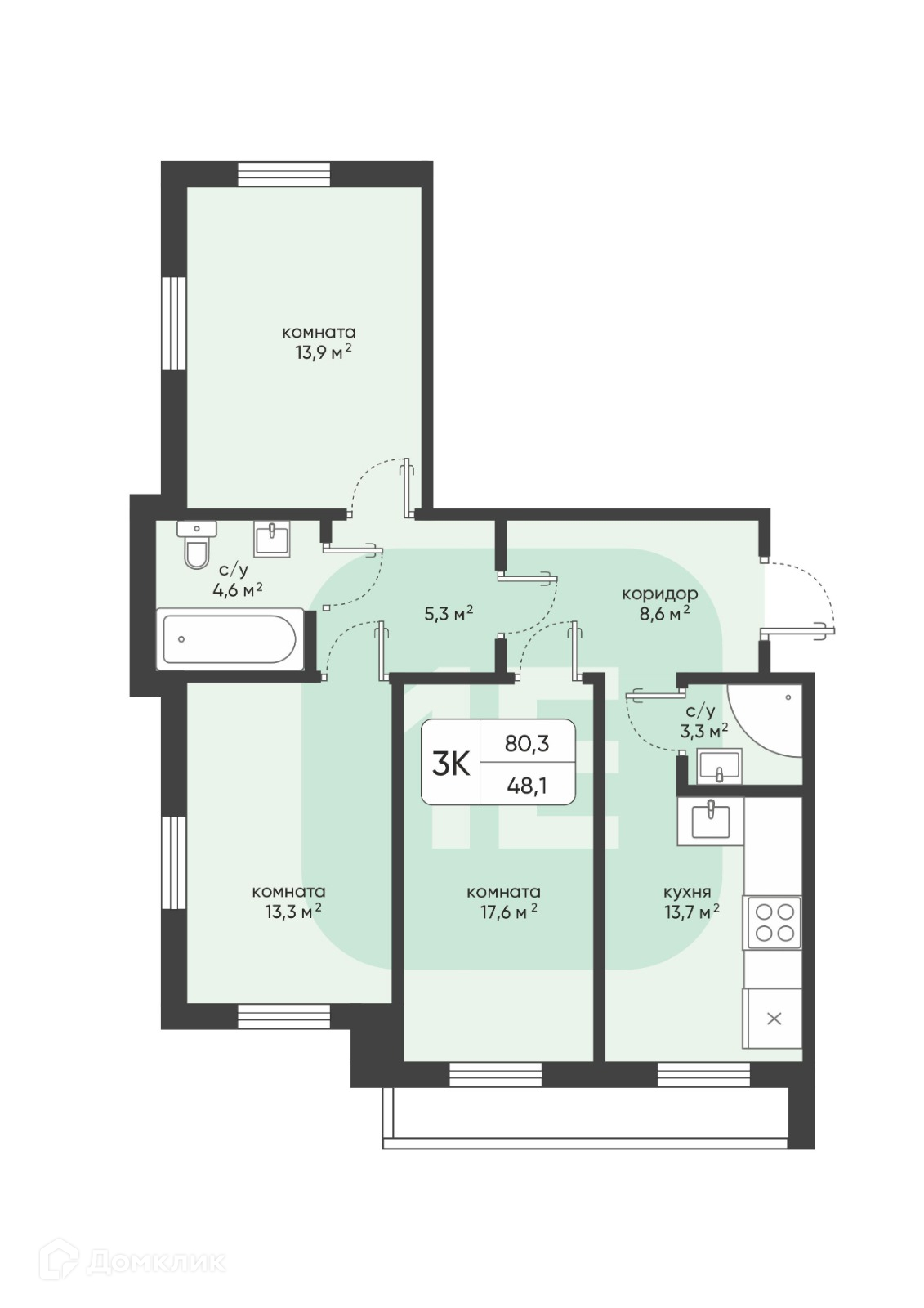 Общая площадь 80.3 м2