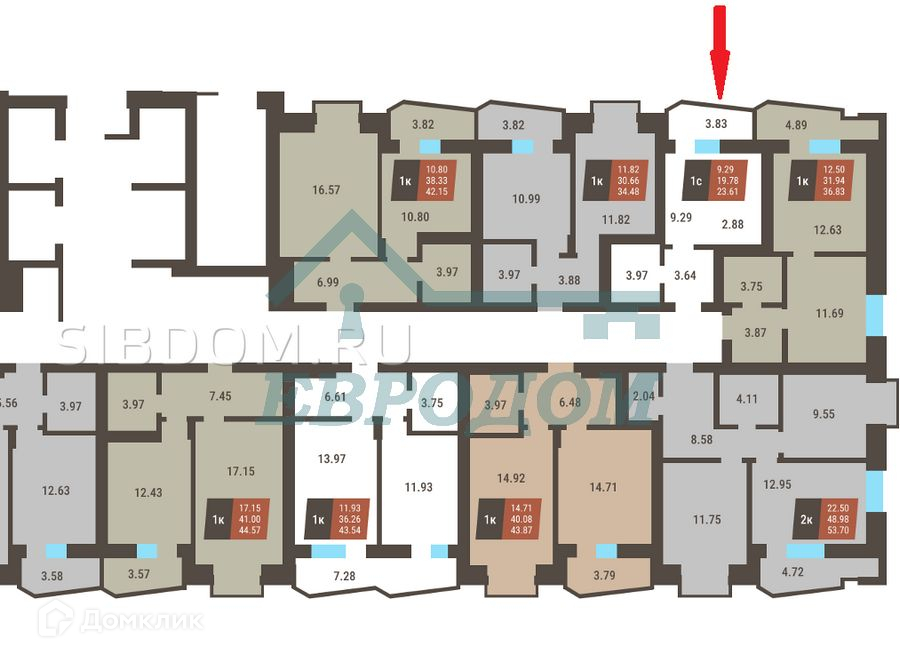 1-комнатная квартира, 23.6 м2, этаж 9 / 27, на продажу в Новосибирске, микрорайон Закаменский, 23/1