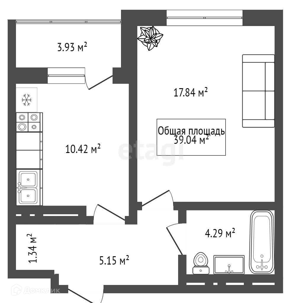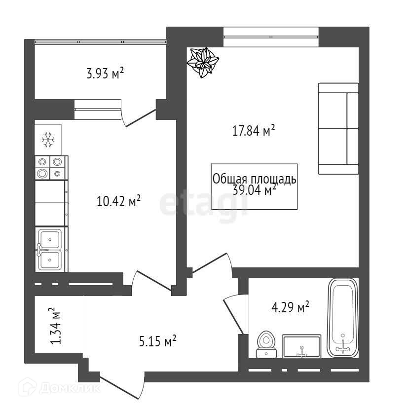 Общая площадь 38.8 м2