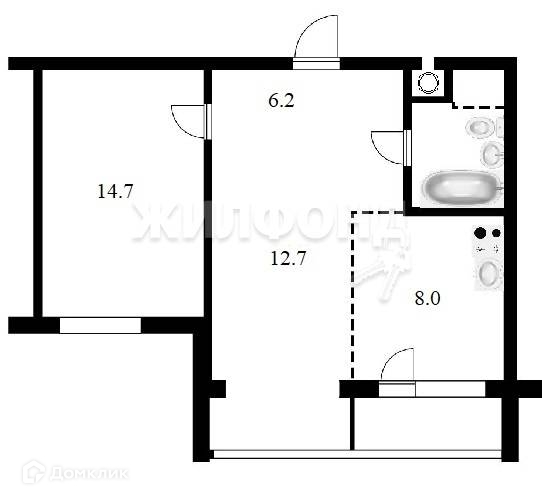 Жилая площадь 27.4 м2