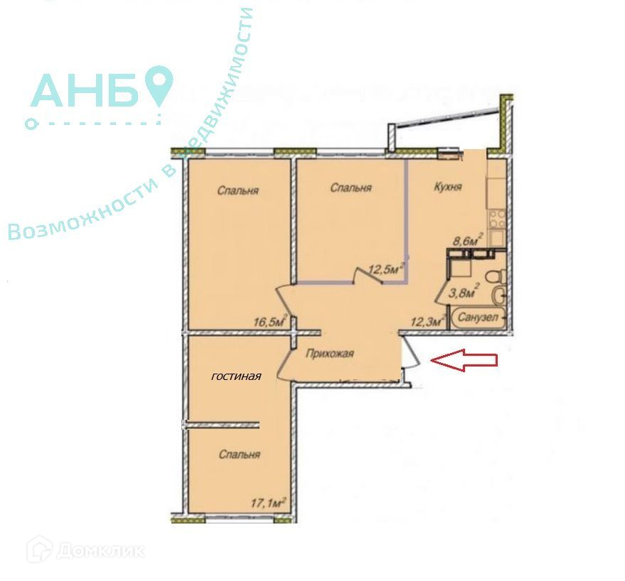 4-комнатная квартира с тремя спальнями и гостиной зоной. Очень редкий вариант для большой семьи с разнополыми детками.
