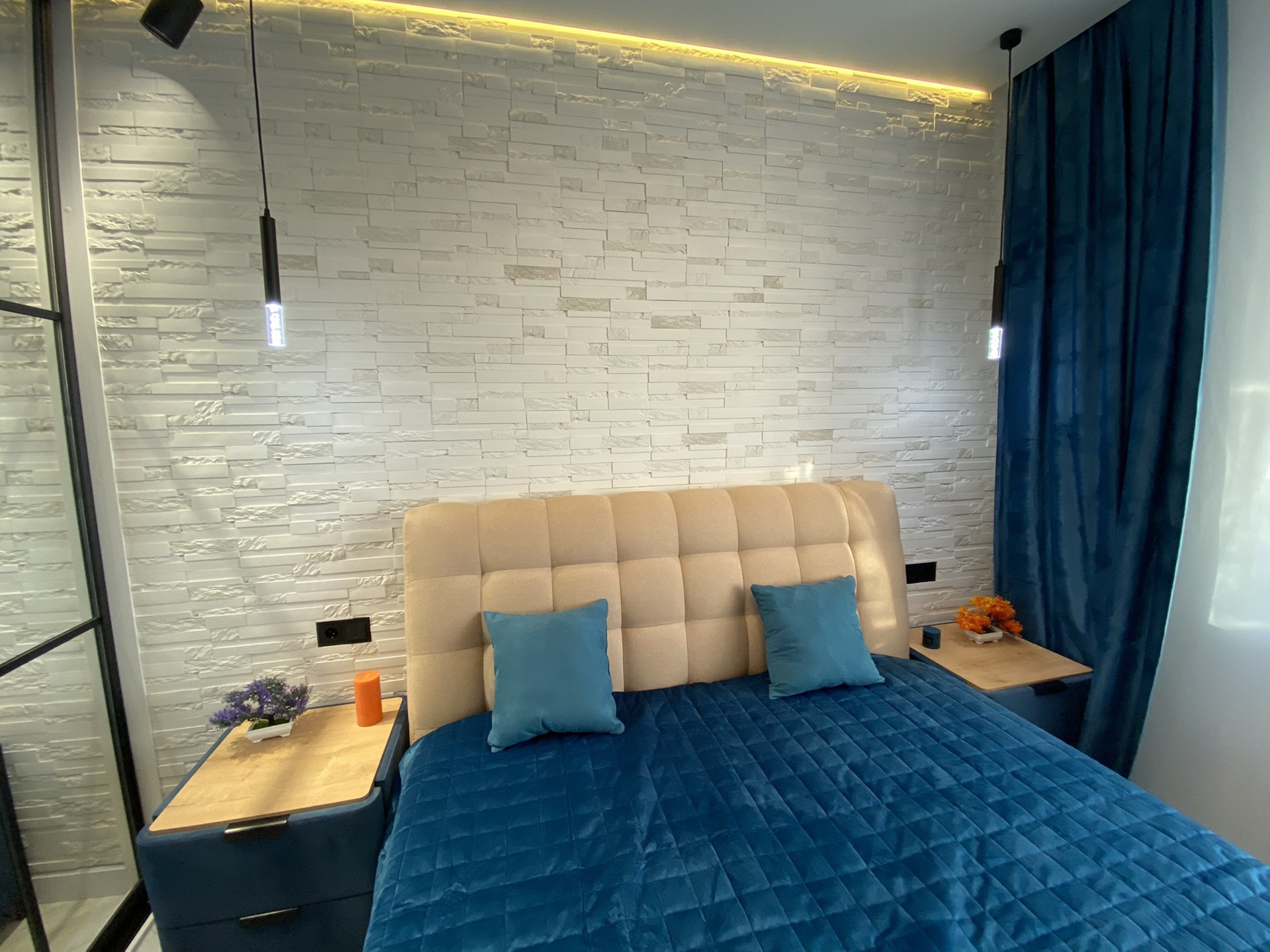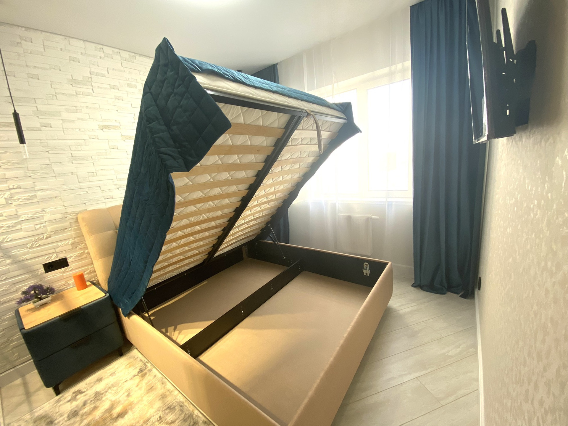 ✔ Спальная комната оснащена всей необходимой мебелью. Кровать OPMATEK с подъемным механизмом и матрас ортопедический, прикроватные тумбочки, телевизор 4 к, освещение. Гардеробная, коврики.