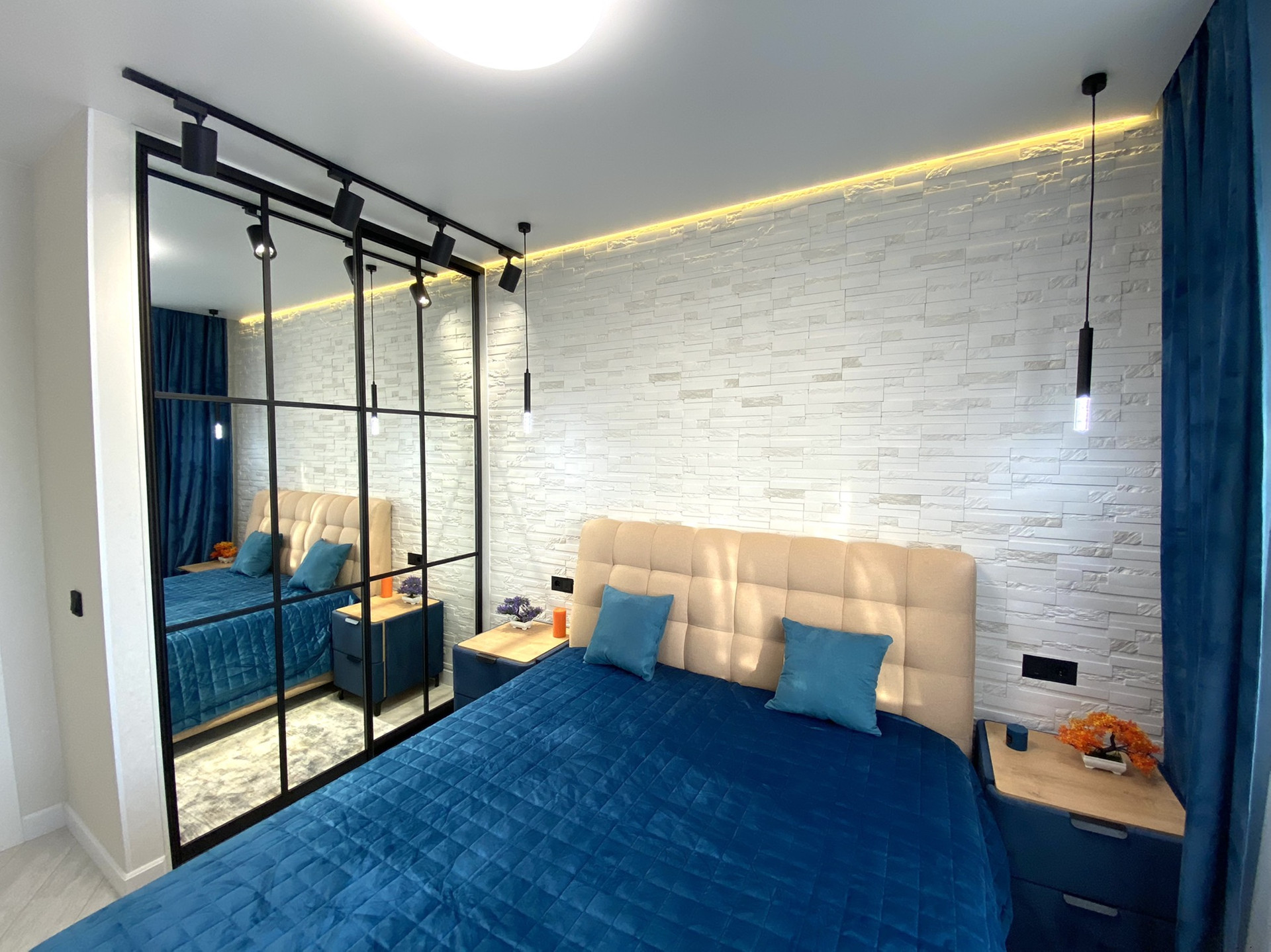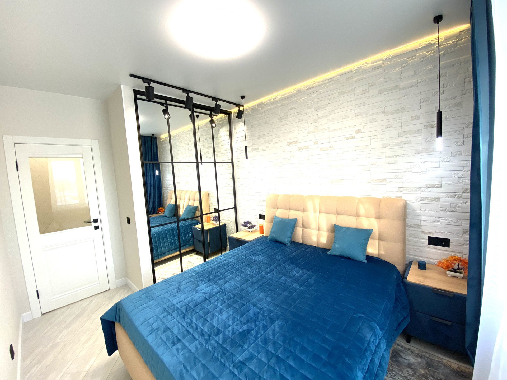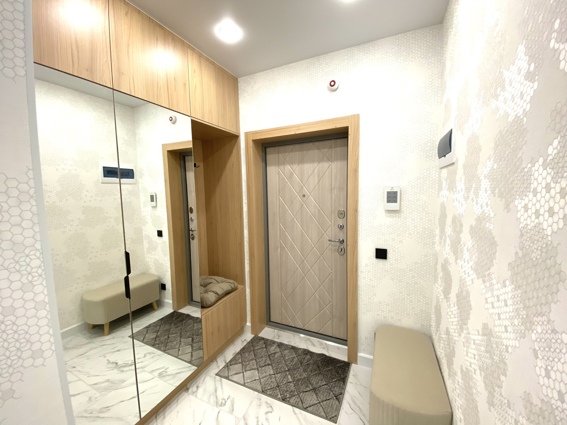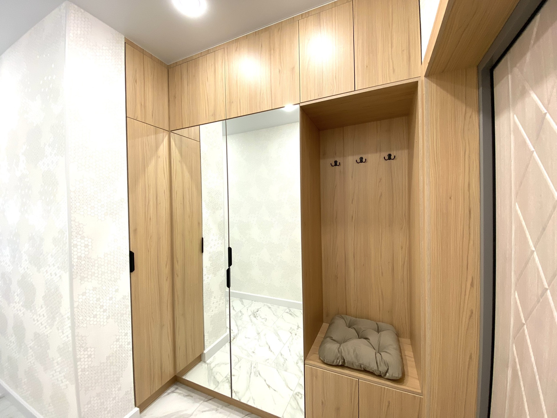 ✔️В коридоре встроенный шкаф для хранения вещей с зеркалами.