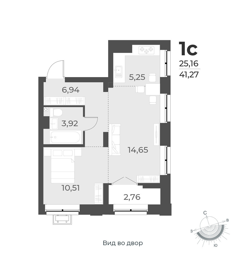 Общая площадь 41.27 м2