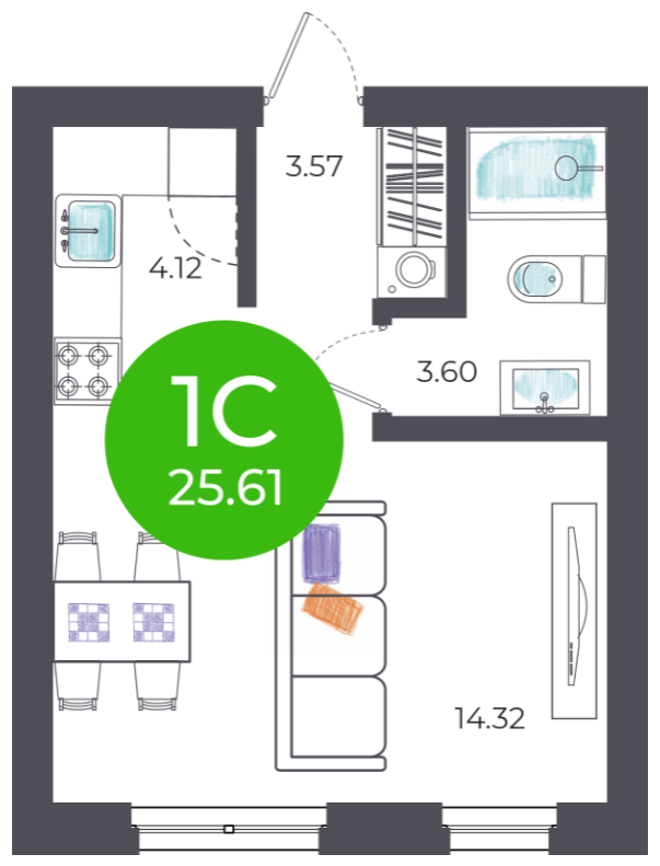 Общая площадь 25 м2