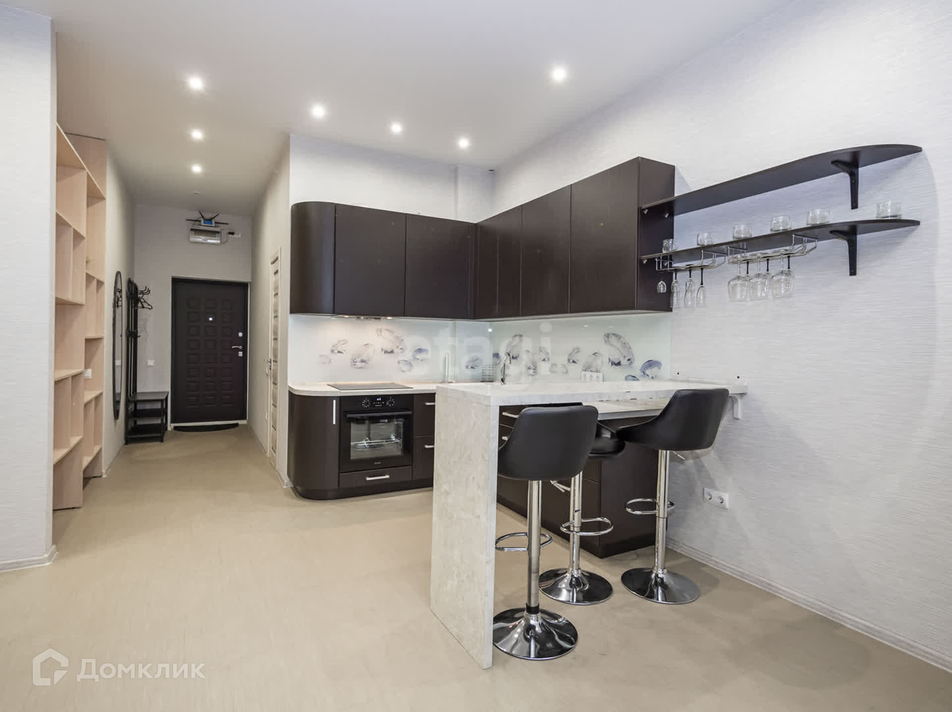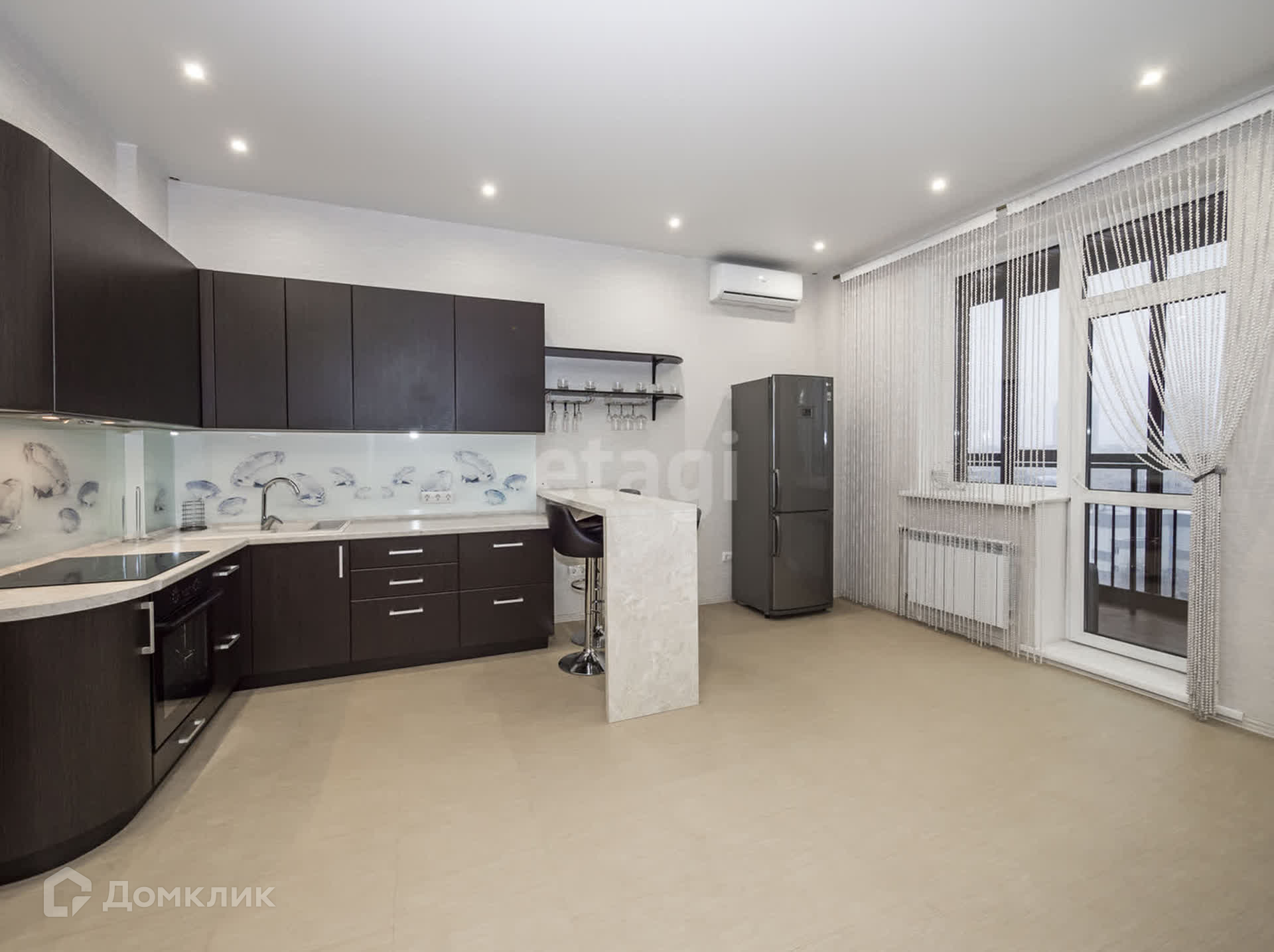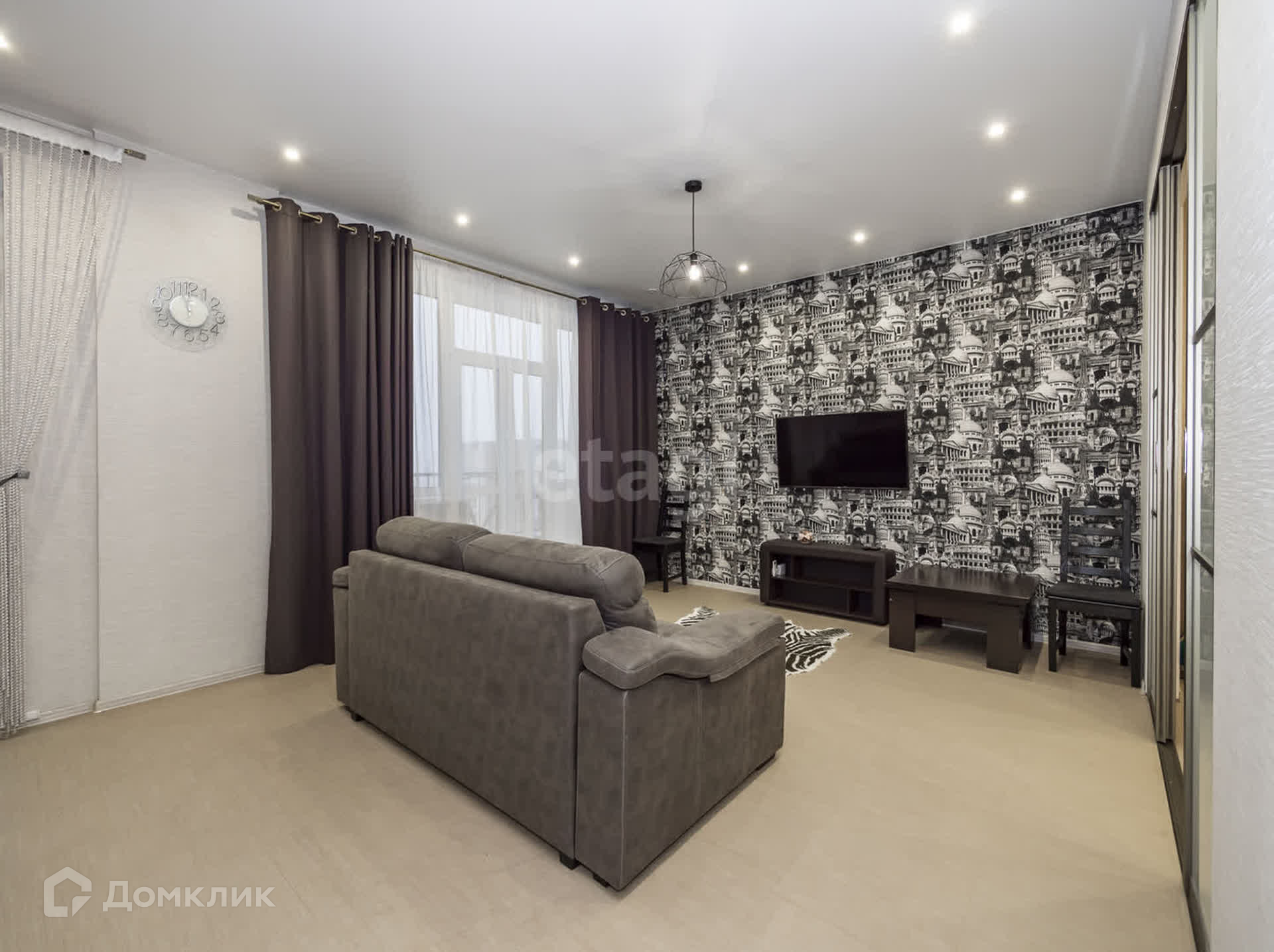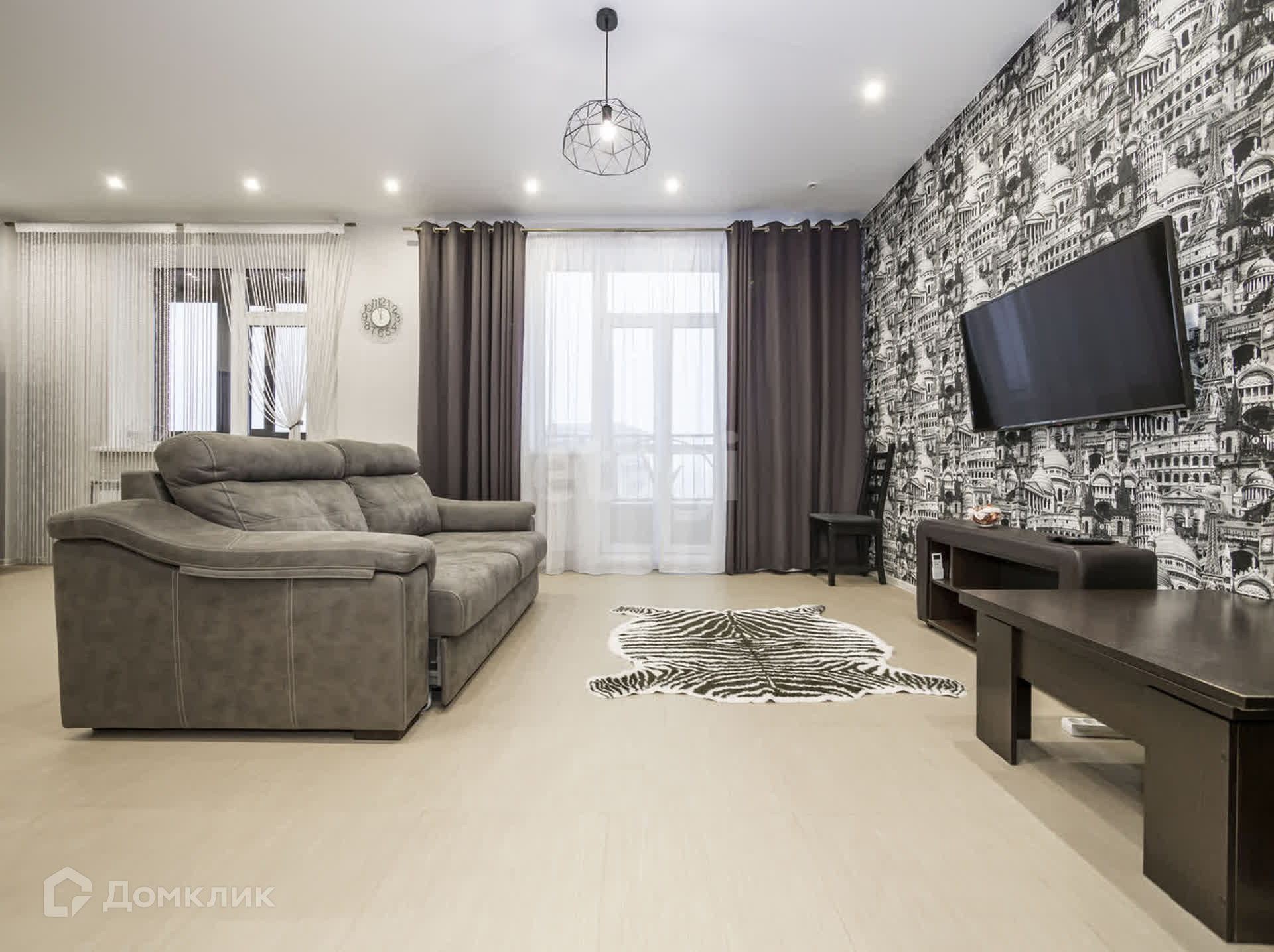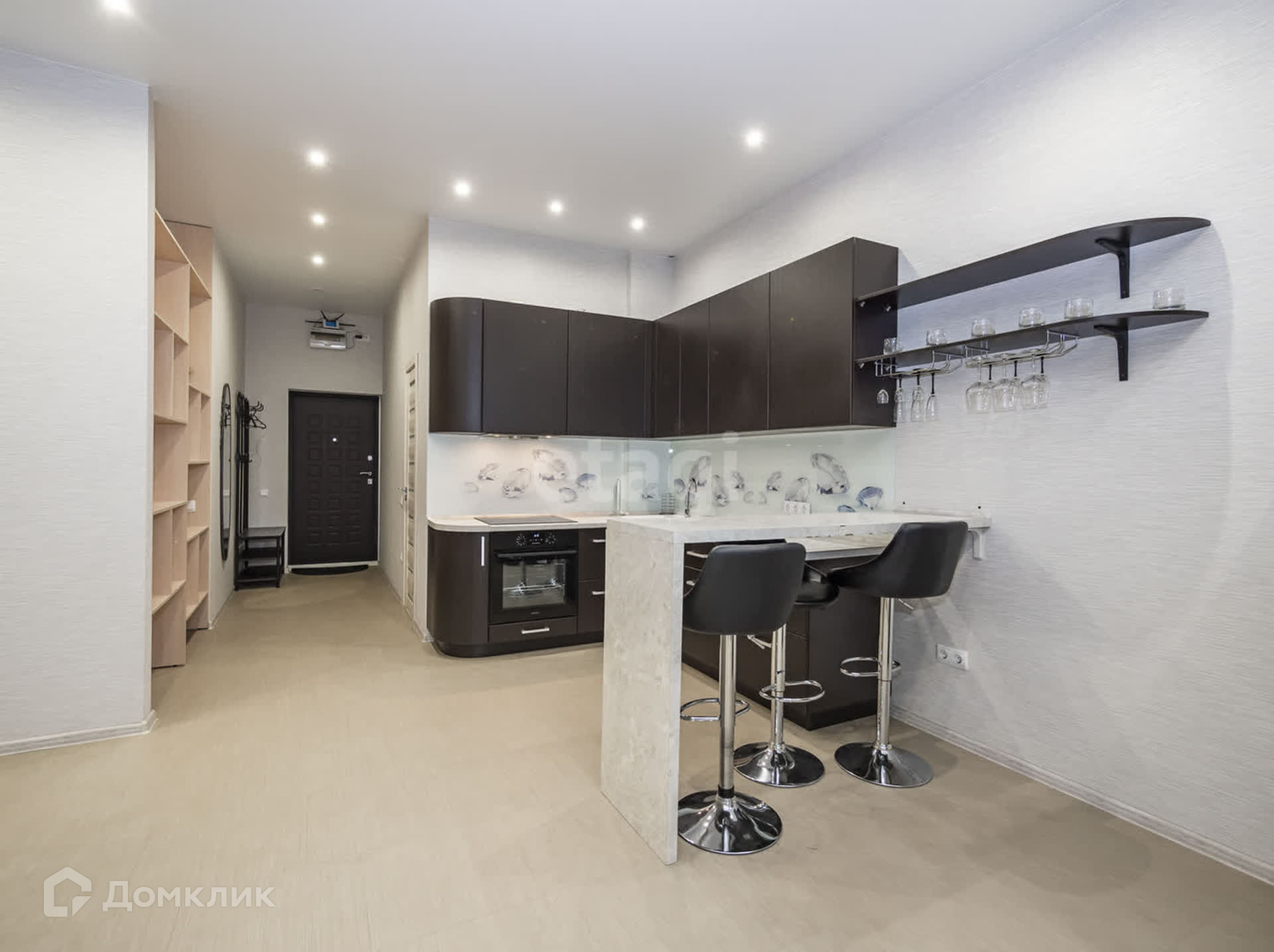 Отличное зонирование пространства в квартире: просторная кухня-гостинная, выделенная зона спальни и гардеробная.